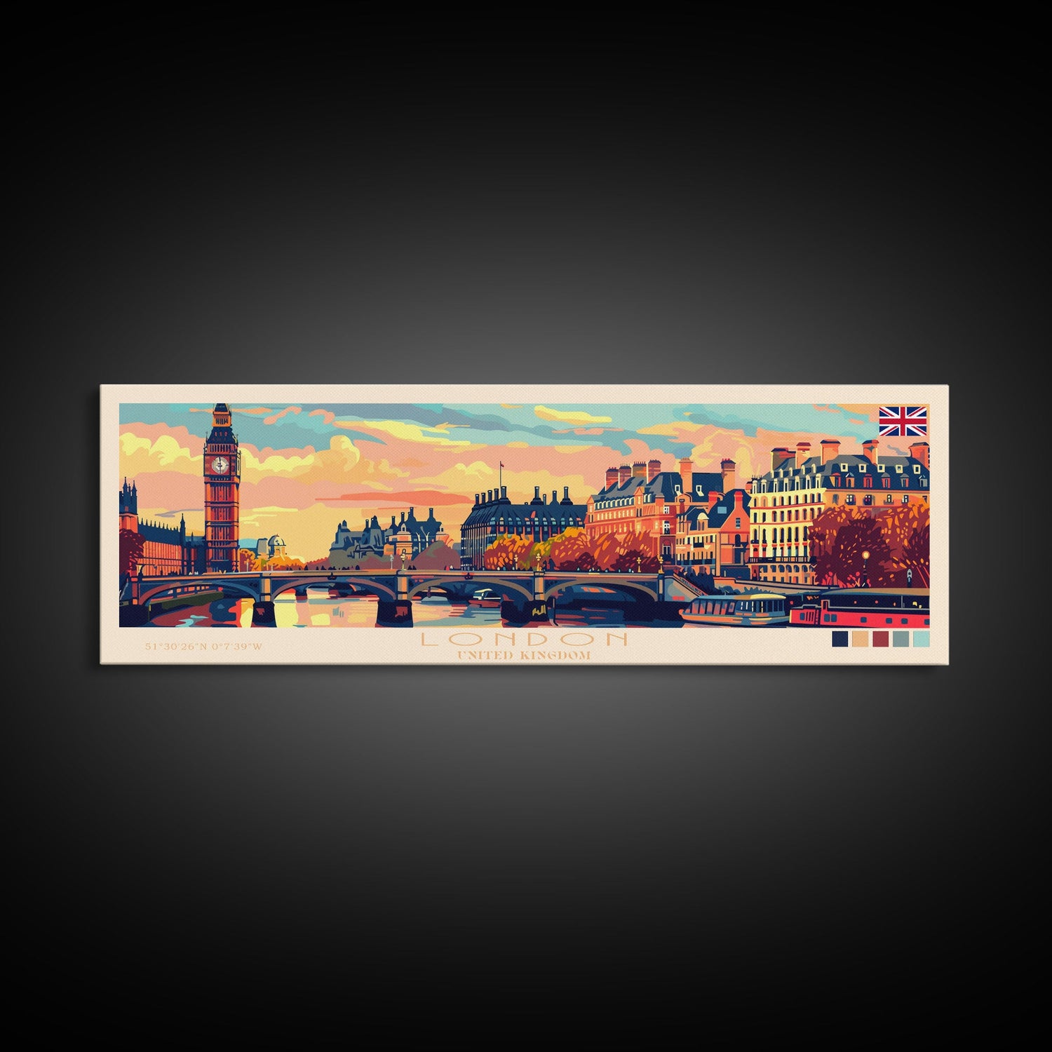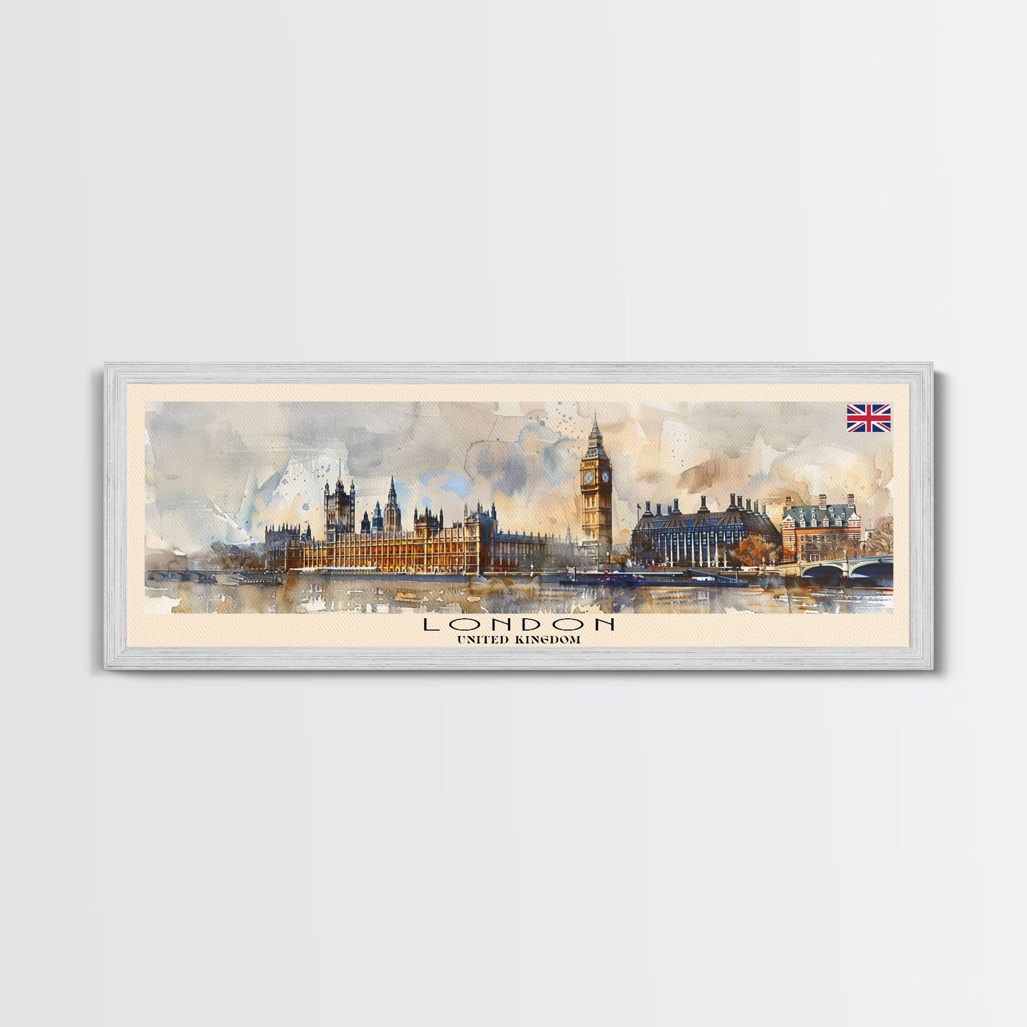 London United Kingdom Panoramic Travel Poster, Framed Canvas Print or Metal Wall Art, Travel Art, Home Decor, Panoramic Painting, Midcentury Art