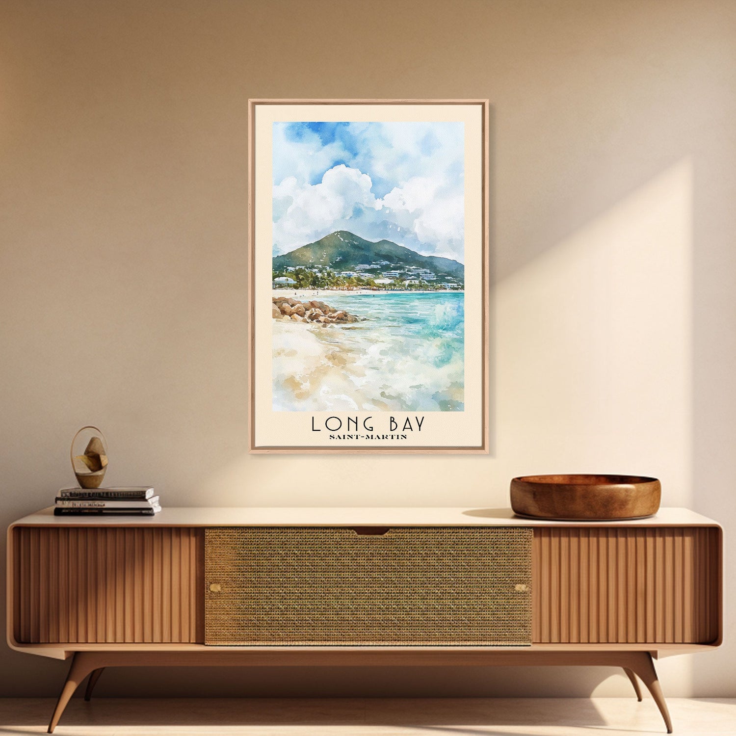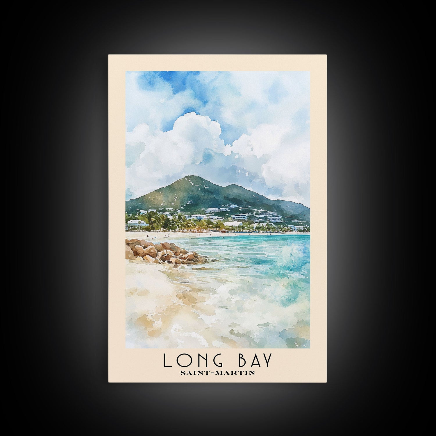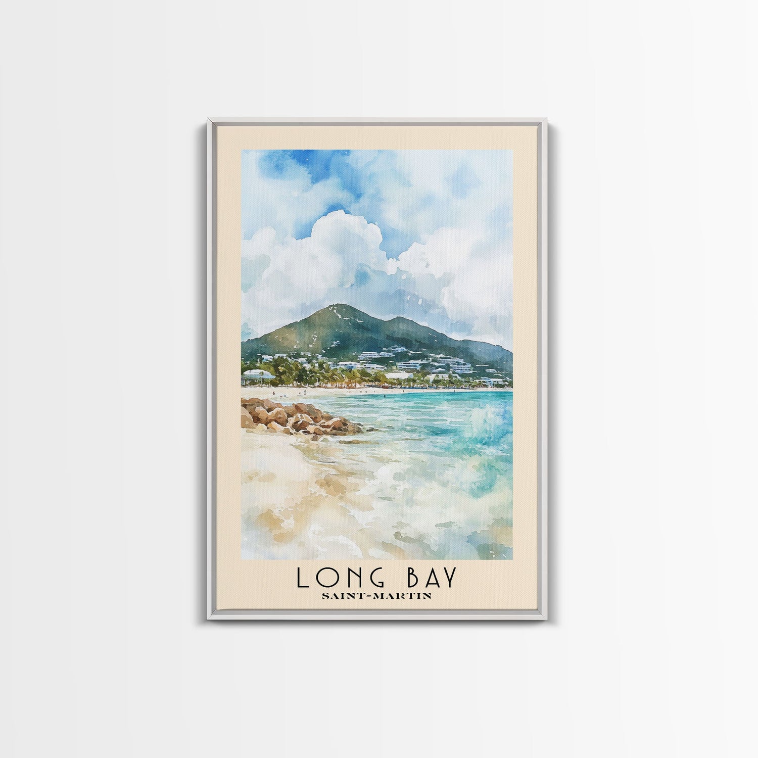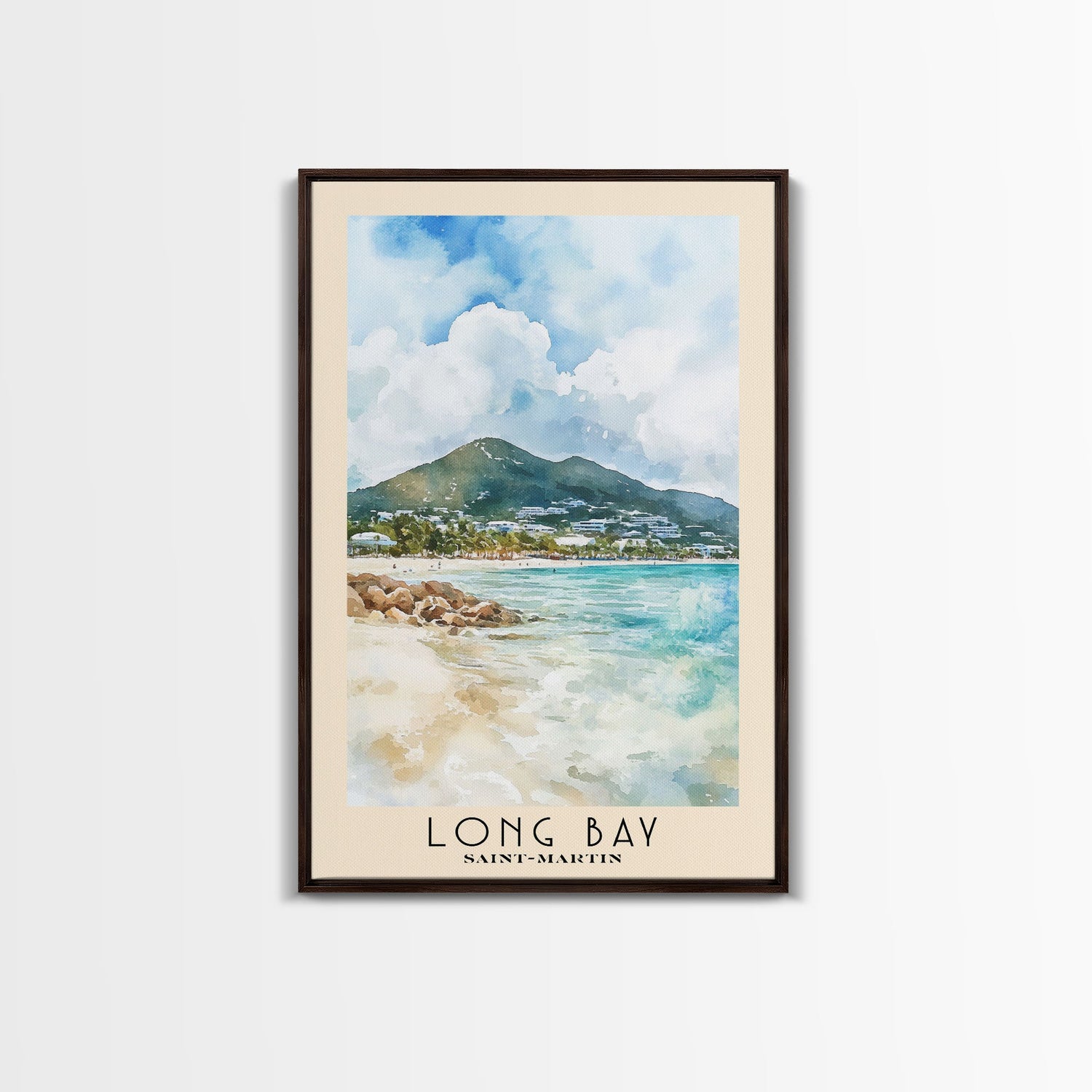 Long Bay, Saint-Martin Watercolor Print, Vacation Gift, Saint-Martin Wall Art, Beach Painting, Beach Decor, Large Wall Art, Wood Frame Art