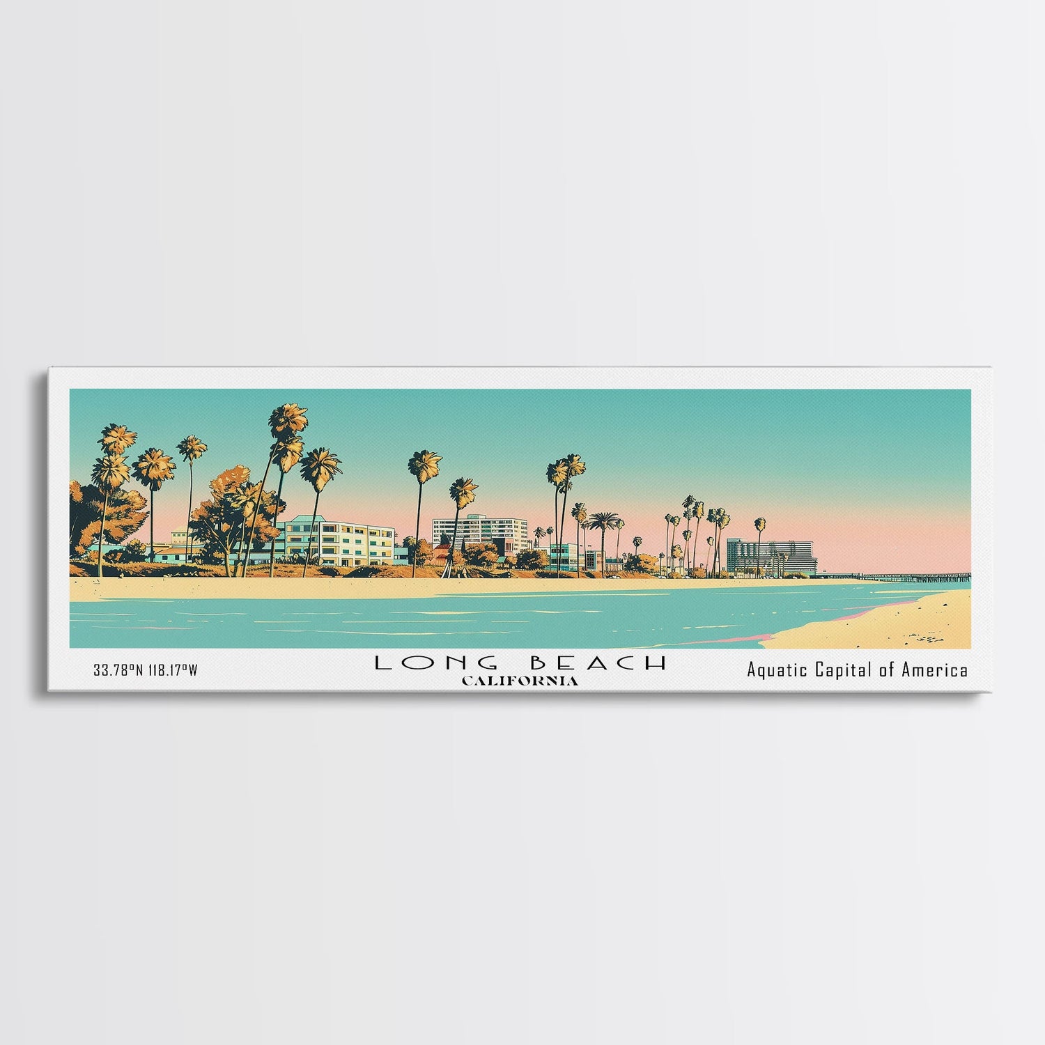 Long Beach California Panoramic Painting, Mid Century Modern Framed Canvas Print, Retro Pop Art Travel Poster, Office Decor - 10x30 Inches / No Frame - Stretched Canvas Only is backordered and will ship as soon as it is back in stock.