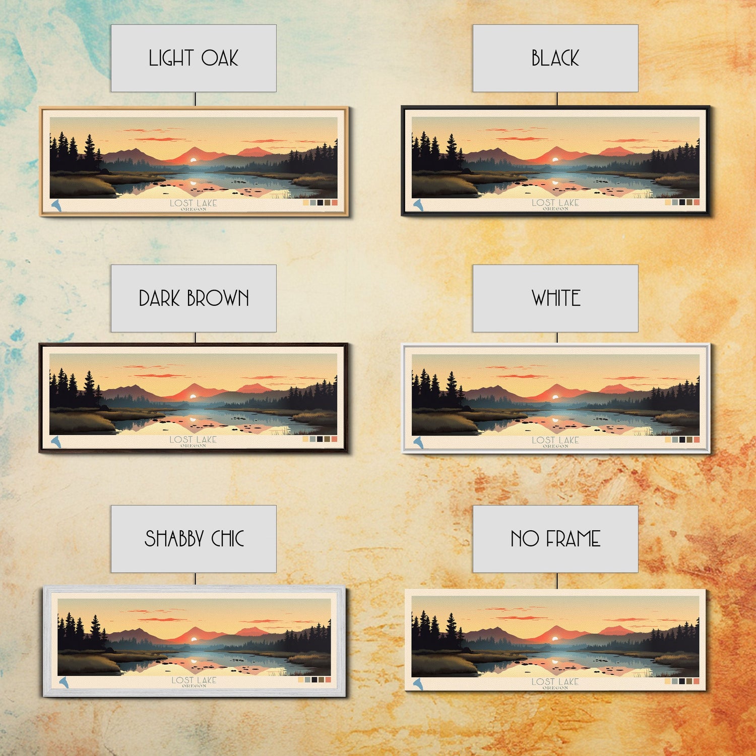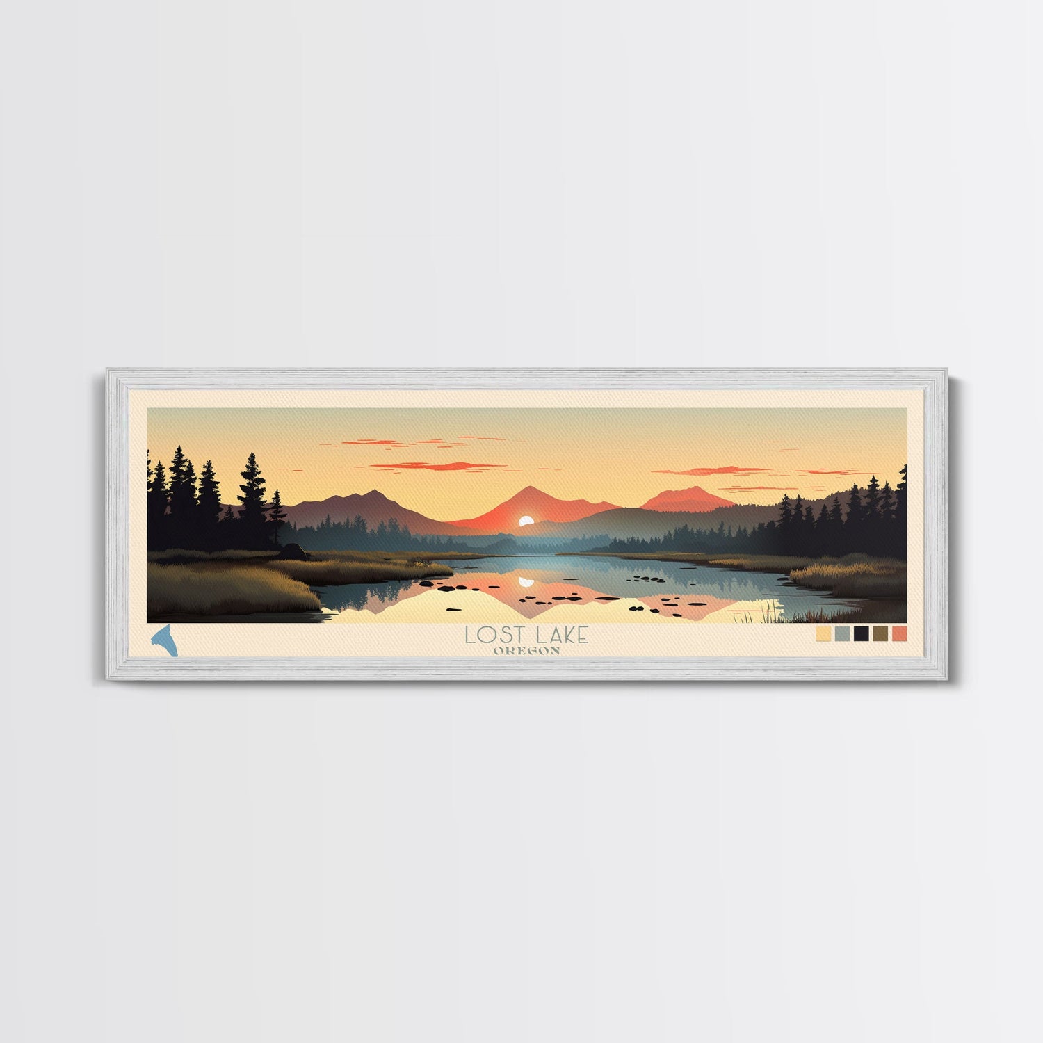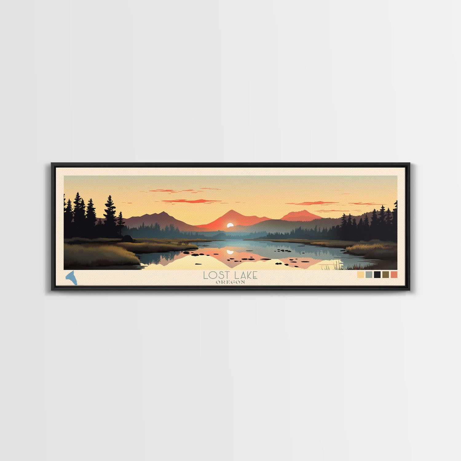 Lost Lake, Oregon Panoramic Wall Art Framed Canvas Print, Midcentury Modern, Pop Art, Home Decor, Travel Poster, Bedroom Art