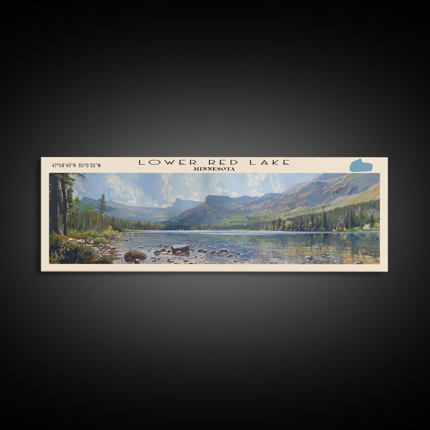 Lower Red Lake Framed Canvas Print, Lake House Decor, Panoramic Wall Art, Travel Poster, Beautiful Landscape Painting, Living Room Decor - 10x30 Inches / No Frame - Stretched Canvas Only is backordered and will ship as soon as it is back in stock.