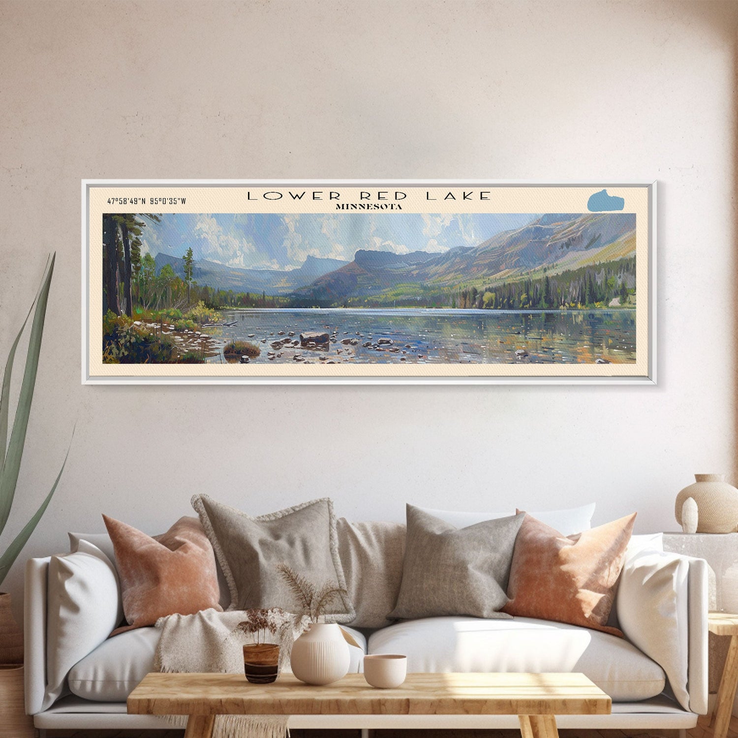 Lower Red Lake Framed Canvas Print, Lake House Decor, Panoramic Wall Art, Travel Poster, Beautiful Landscape Painting, Living Room Decor