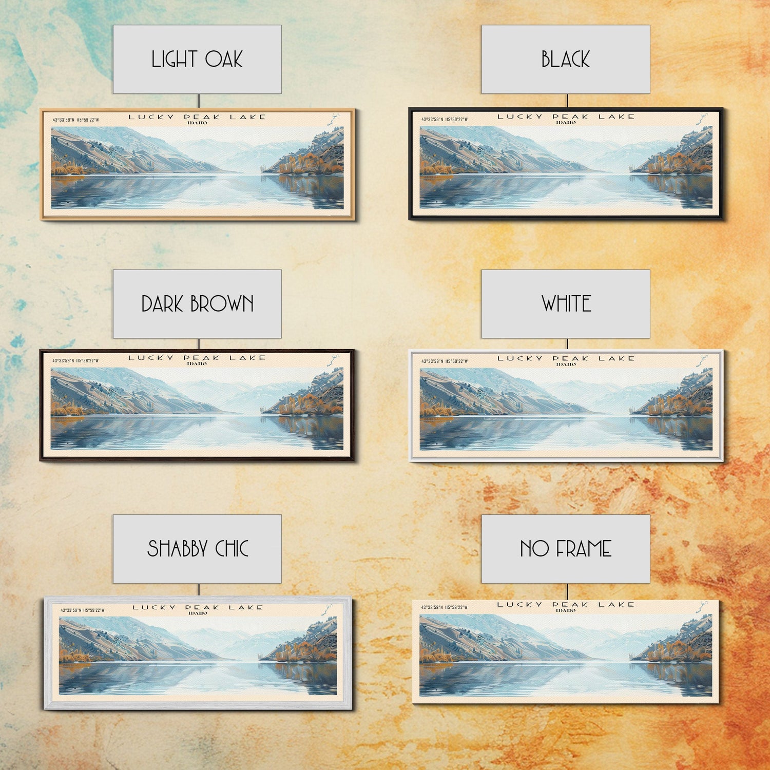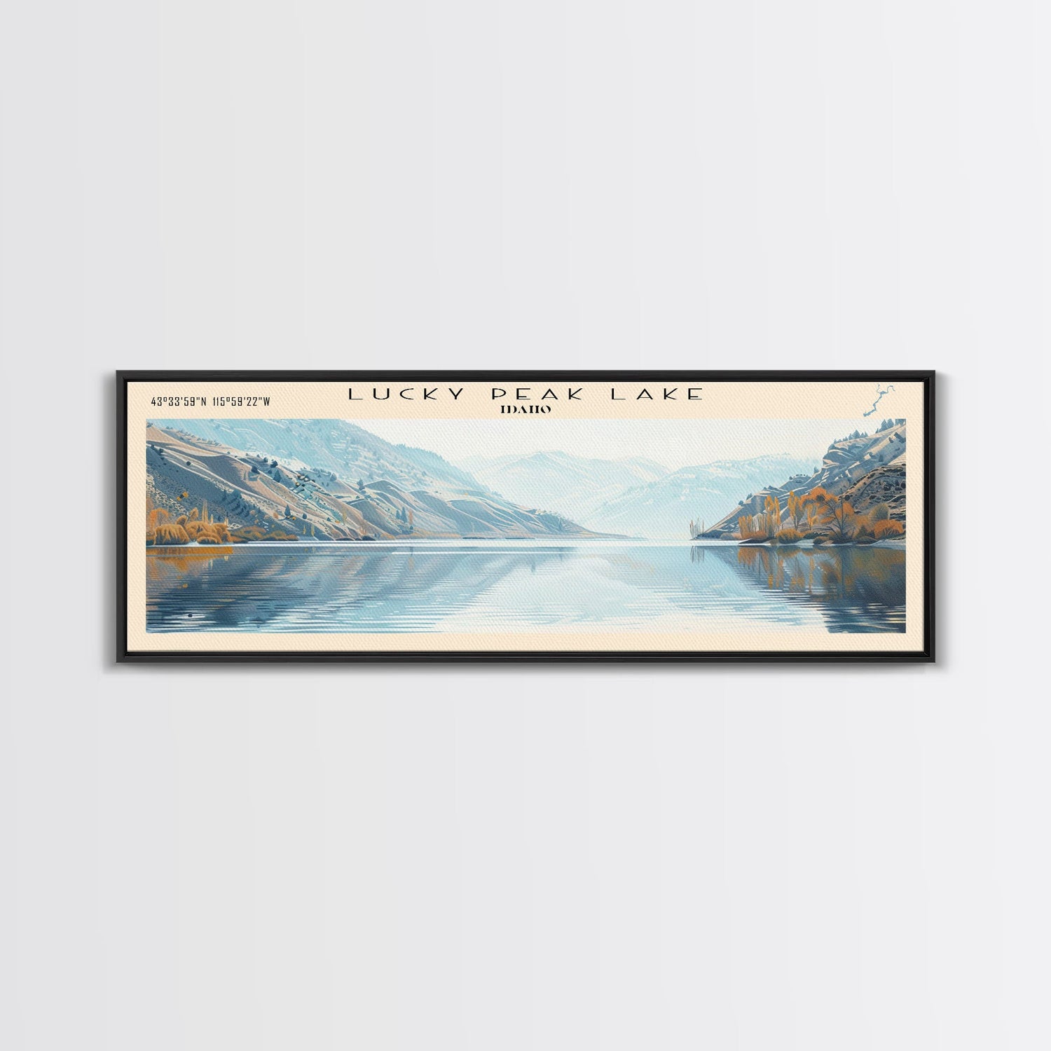 Lucky Peak Lake Idaho Framed Canvas Print, Lake House Decor, Panoramic Wall Art, Travel Poster, Landscape Painting, Modern Art