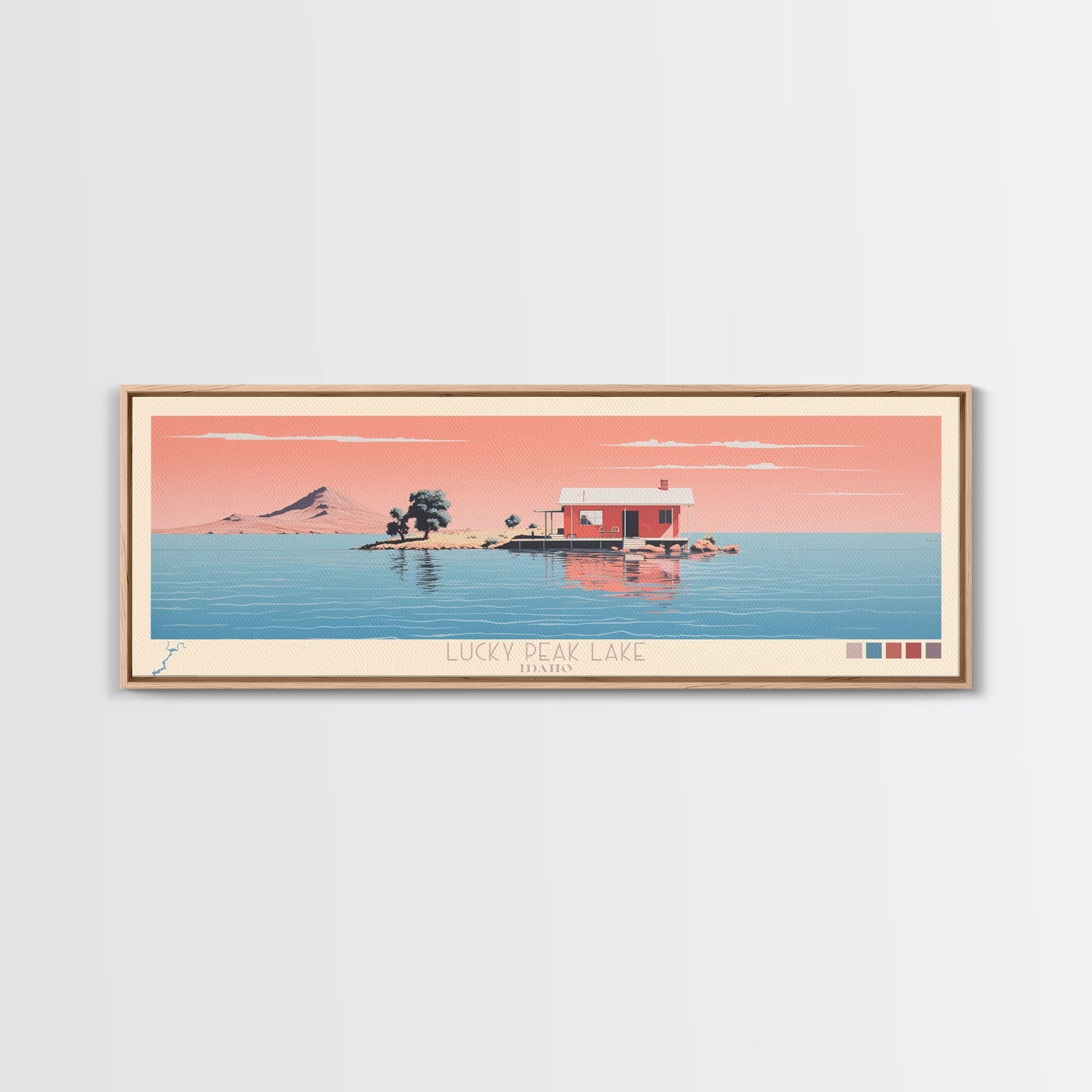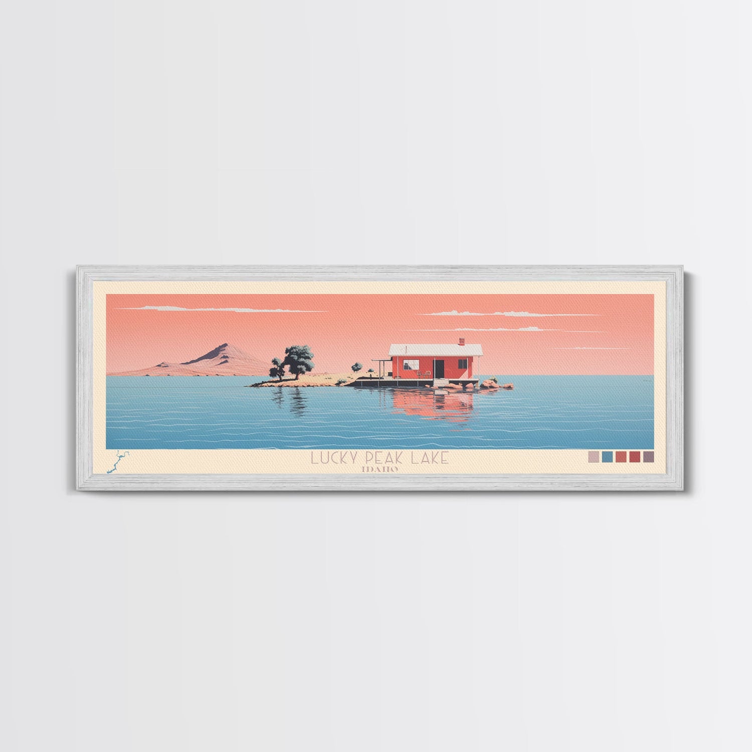 Lucky Peak Lake, Idaho Panoramic Wall Art Framed Canvas Print, Midcentury Modern, Pop Art, Home Decor, Travel Poster, Bedroom Art