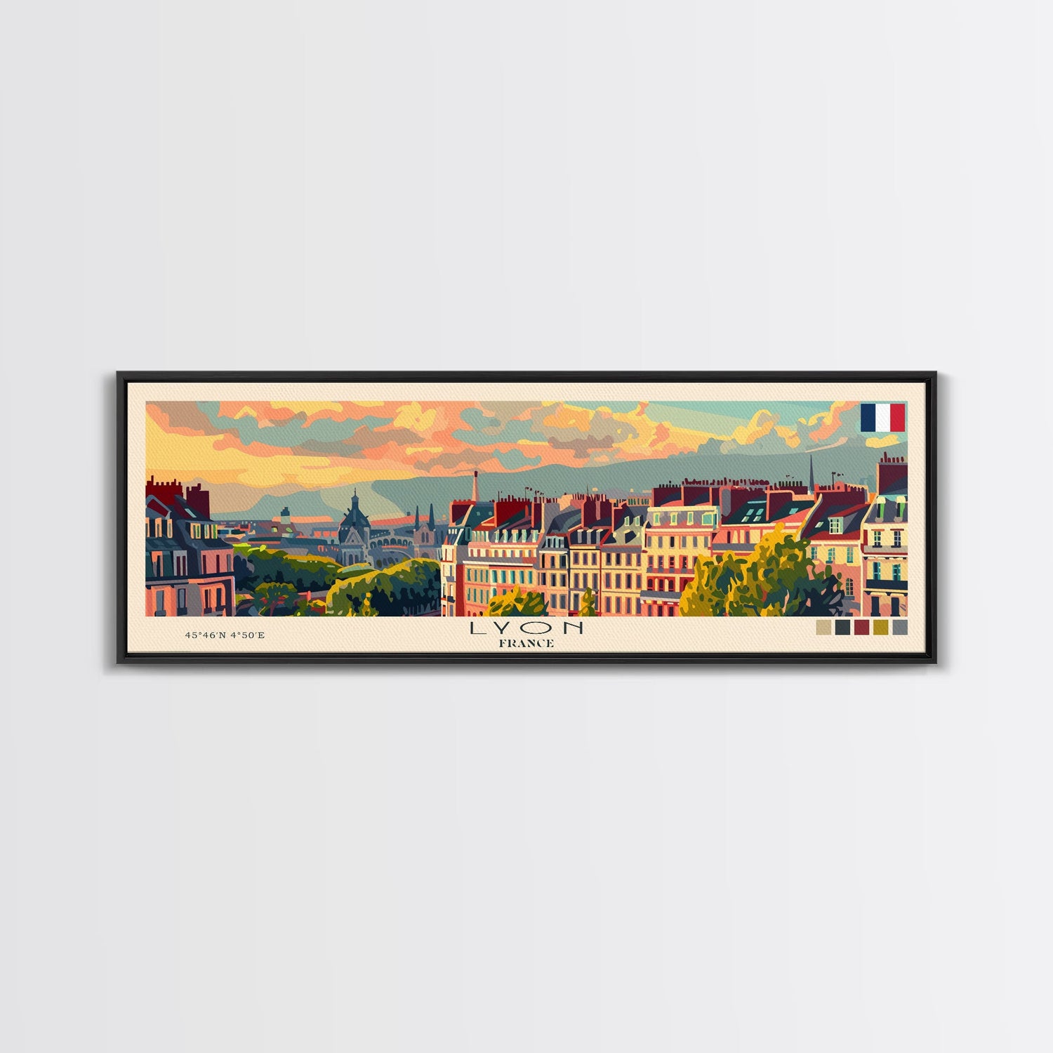 Lyon France Travel Print Wall Art, Panoramic City Art, Travel Art, Wall Decor, Vacation Gift, Framed Canvas Print Or Metal Art
