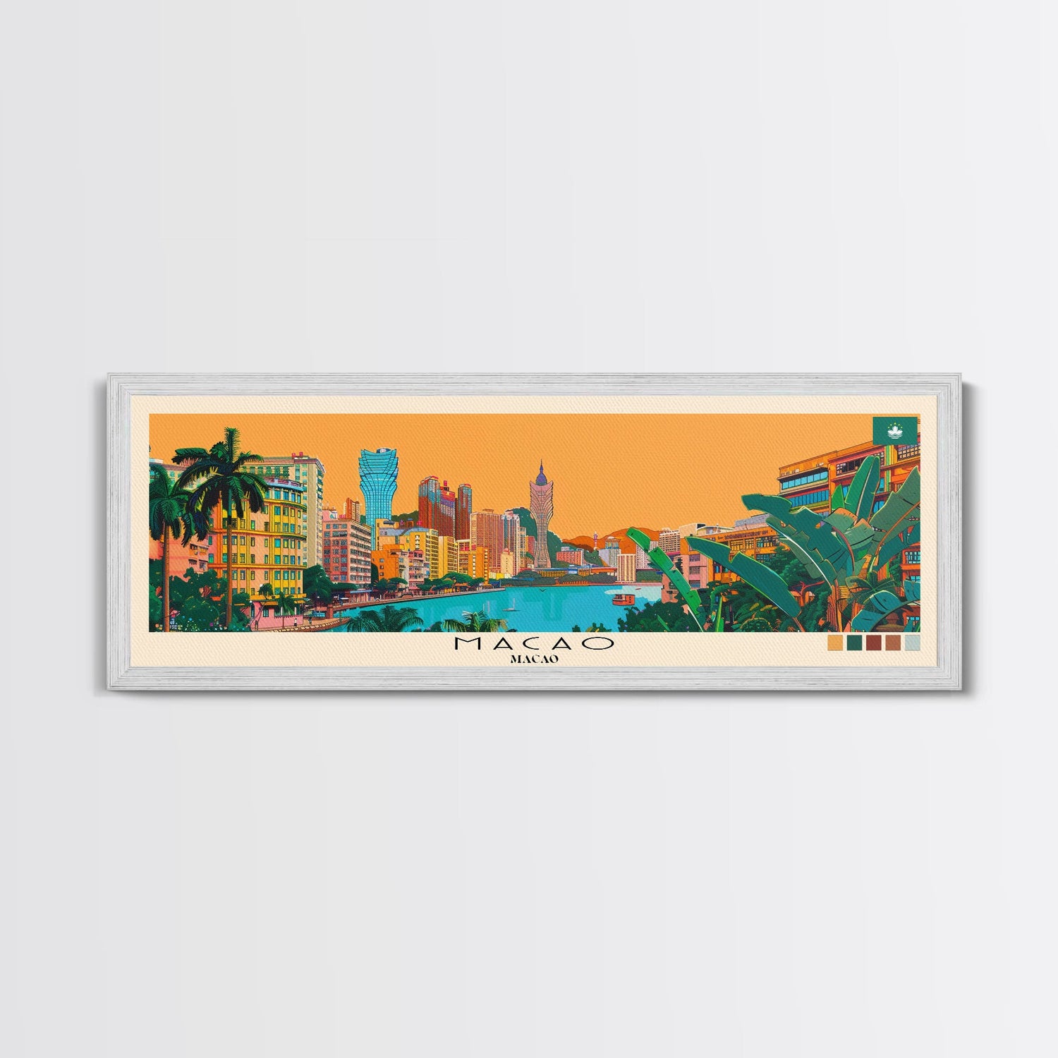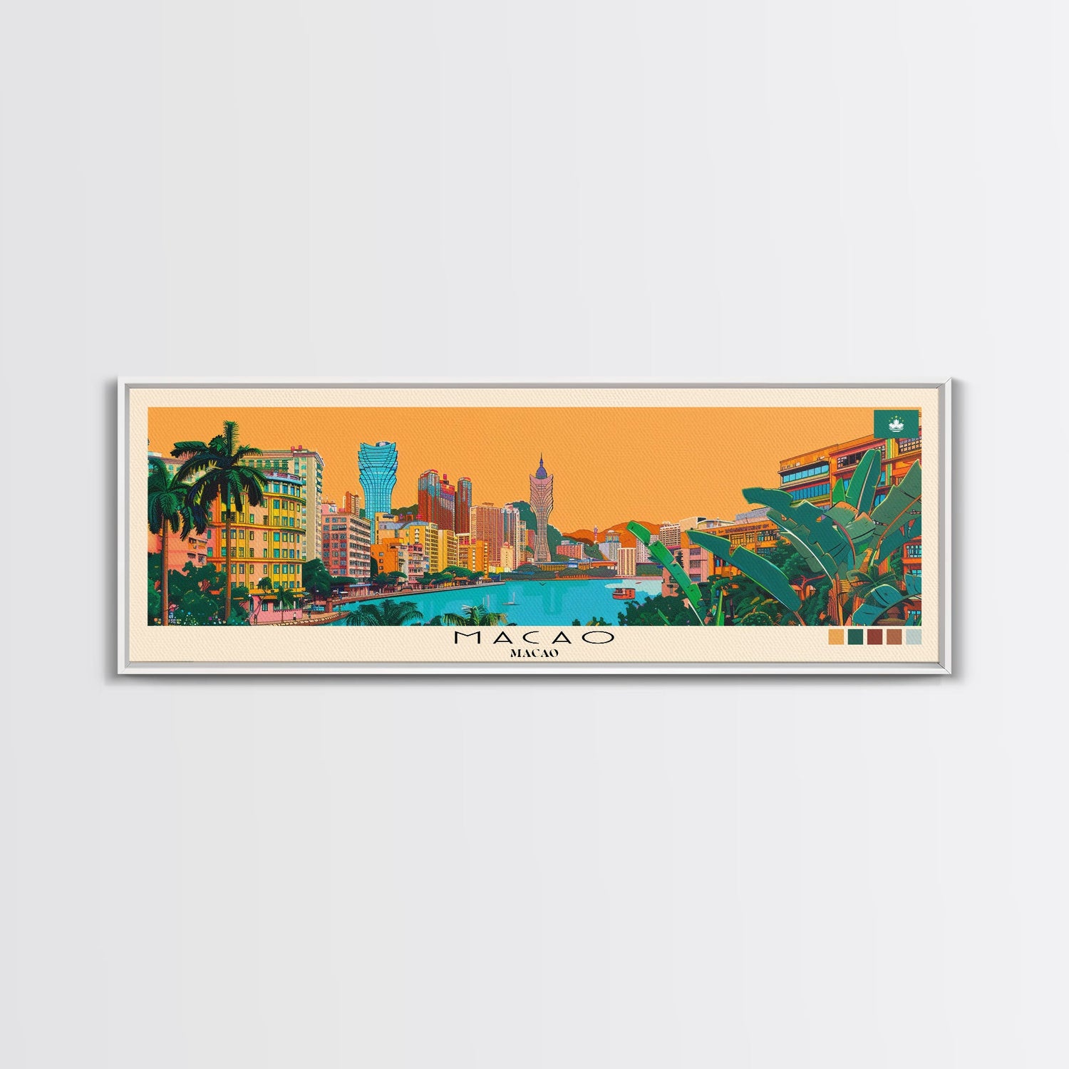 Macao, Macao Panoramic Canvas Print, Macao, Macao Painting, Macao Art, Macao Travel Poster, Travel Art, Living Room Painting