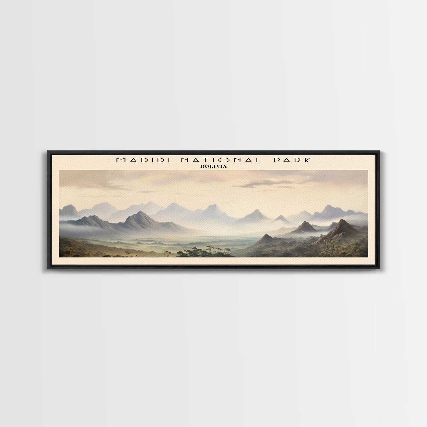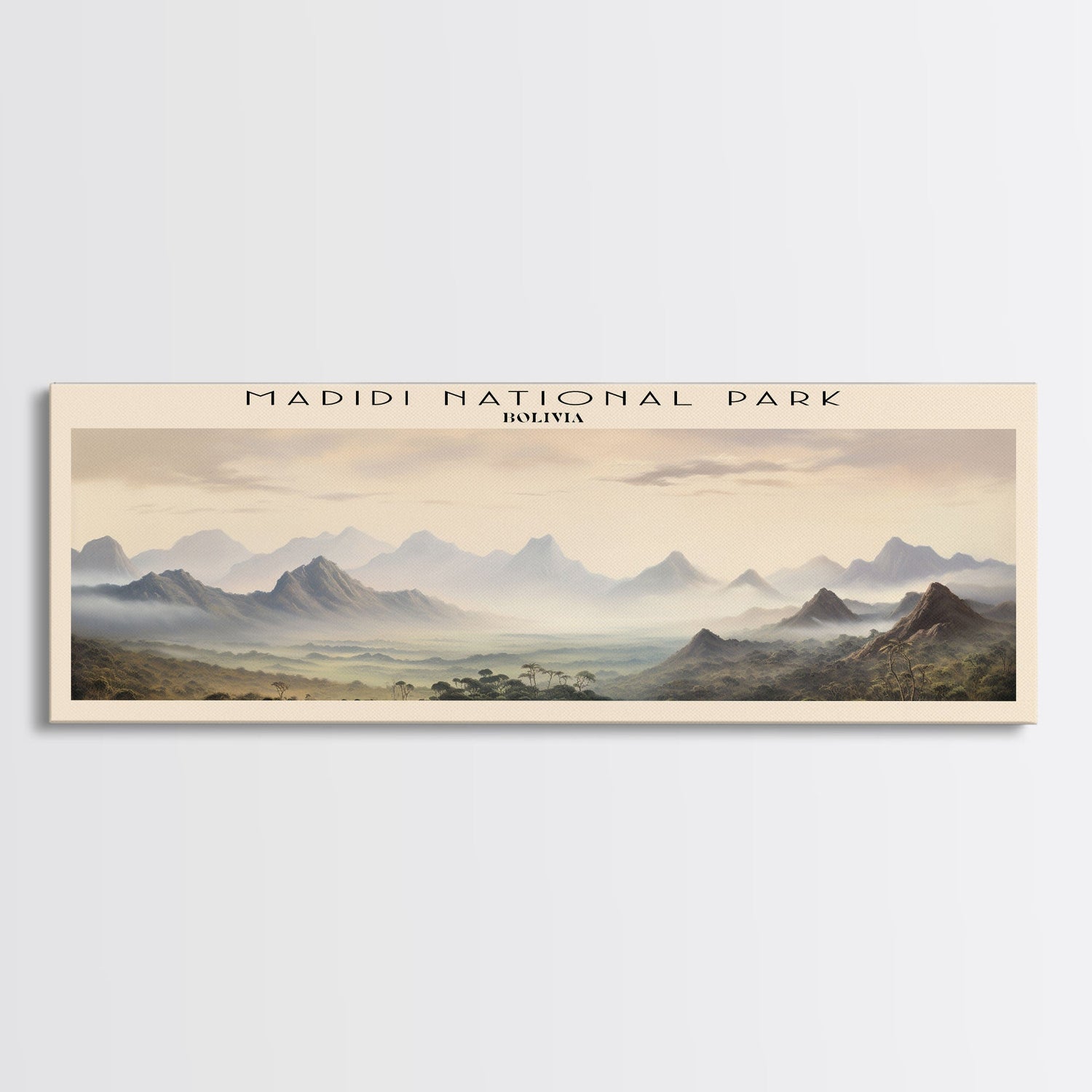 Madidi National Park Travel Print Wall Art, Travel Poster Print, Retro Style COUNTRY Home Decor, Wall Hanging, Travel Gift Idea, Unique Metal Art - 10x30 Inches / No Frame - Stretched Canvas Only is backordered and will ship as soon as it is back in stock.