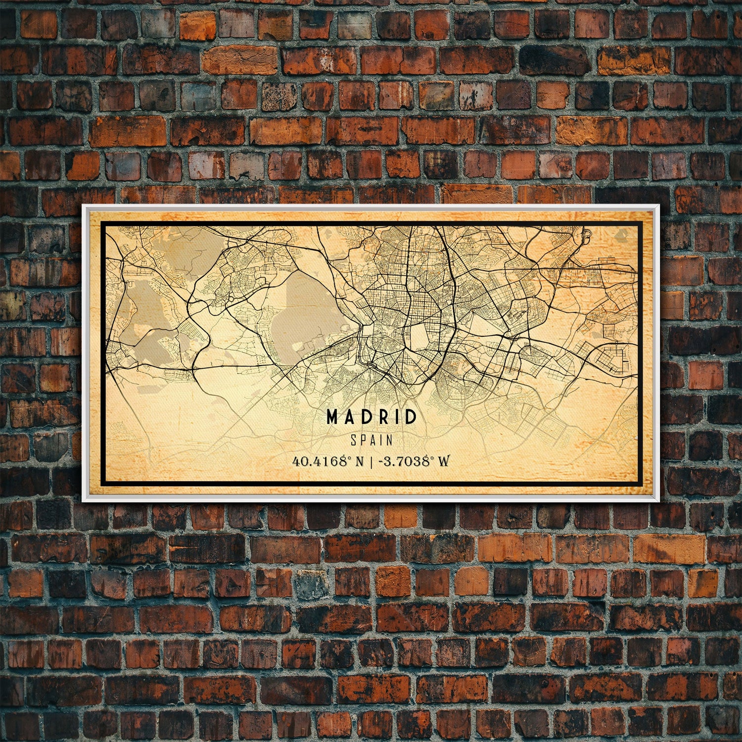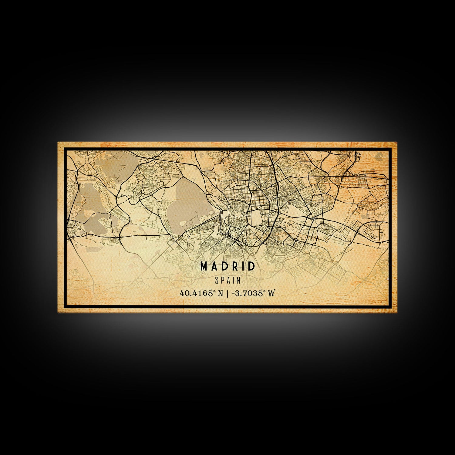 Madrid Spain map print poster or framed canvas, Madrid map print poster canvas, Madrid city map print poster canvas, Vintage Travel Art - 10x20 Inches / No Frame - Stretched Canvas Only is backordered and will ship as soon as it is back in stock.