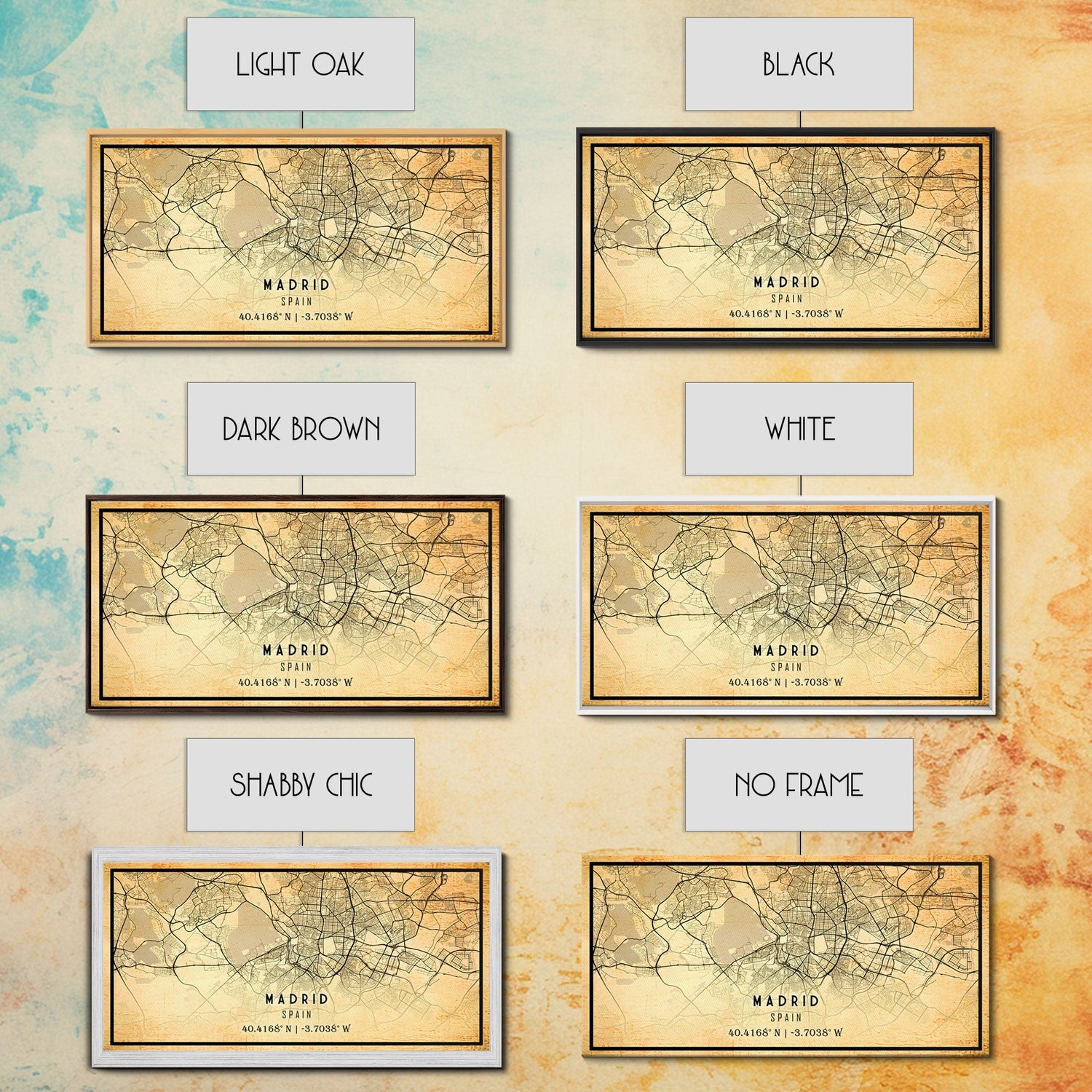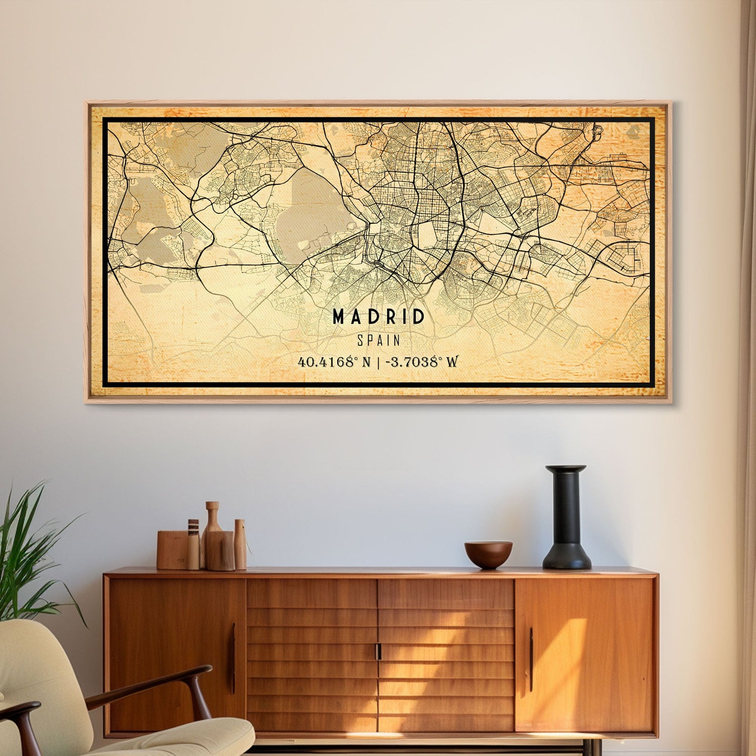 Madrid Spain map print poster or framed canvas, Madrid map print poster canvas, Madrid city map print poster canvas, Vintage Travel Art