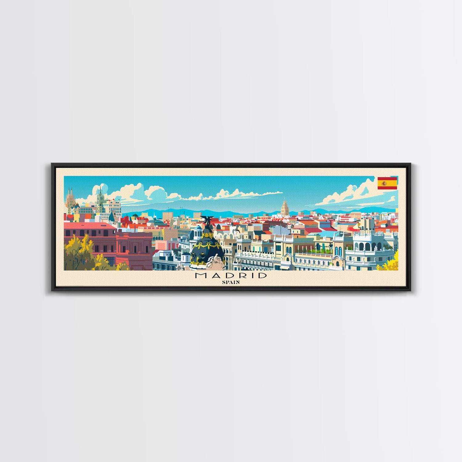 Madrid Spain Panoramic Travel Poster, Framed Canvas Print or Metal Wall Art, Travel Art, Home Decor, Panoramic Painting, Midcentury Art - 10x30 Inches / No Frame - Stretched Canvas Only is backordered and will ship as soon as it is back in stock.