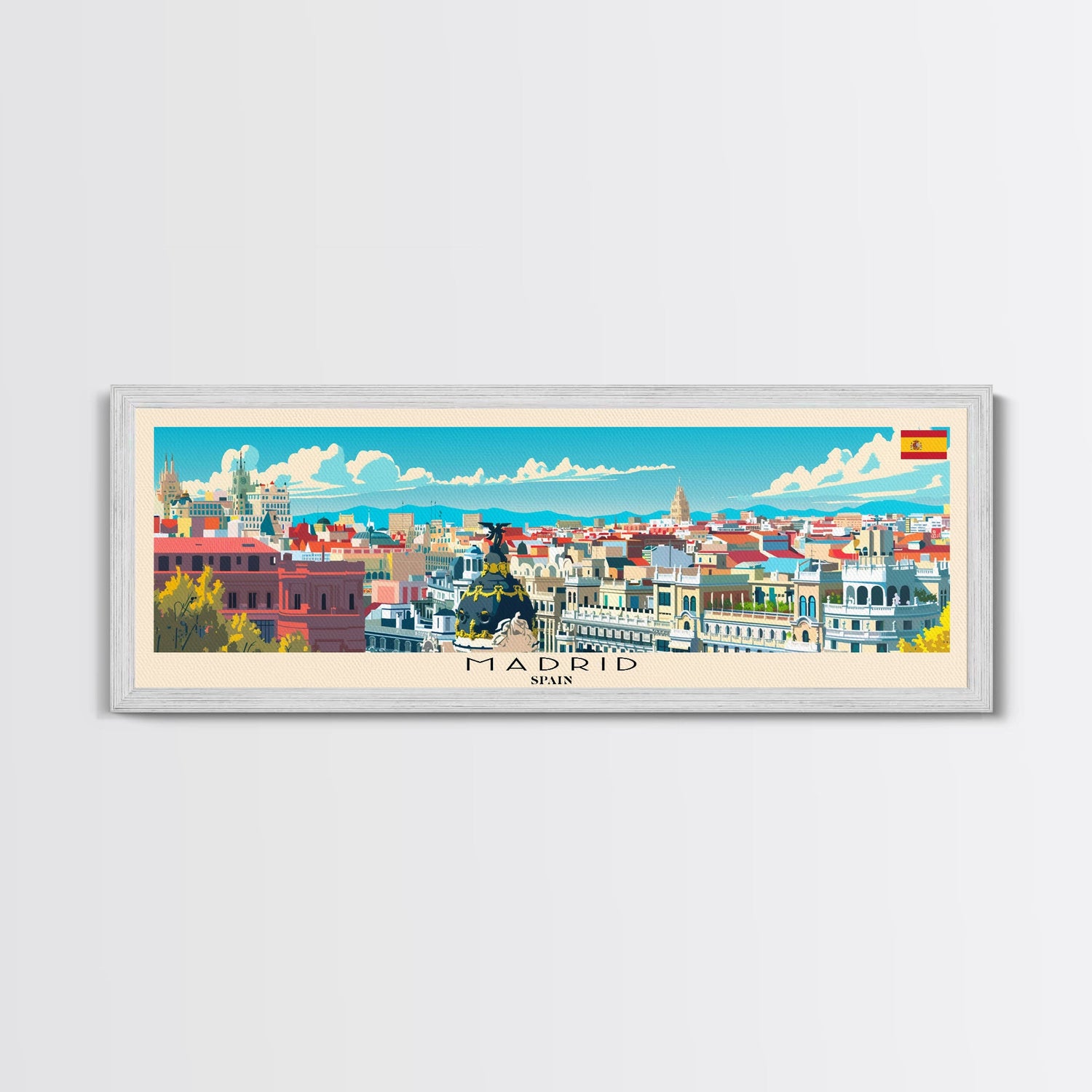 Madrid Spain Panoramic Travel Poster, Framed Canvas Print or Metal Wall Art, Travel Art, Home Decor, Panoramic Painting, Midcentury Art