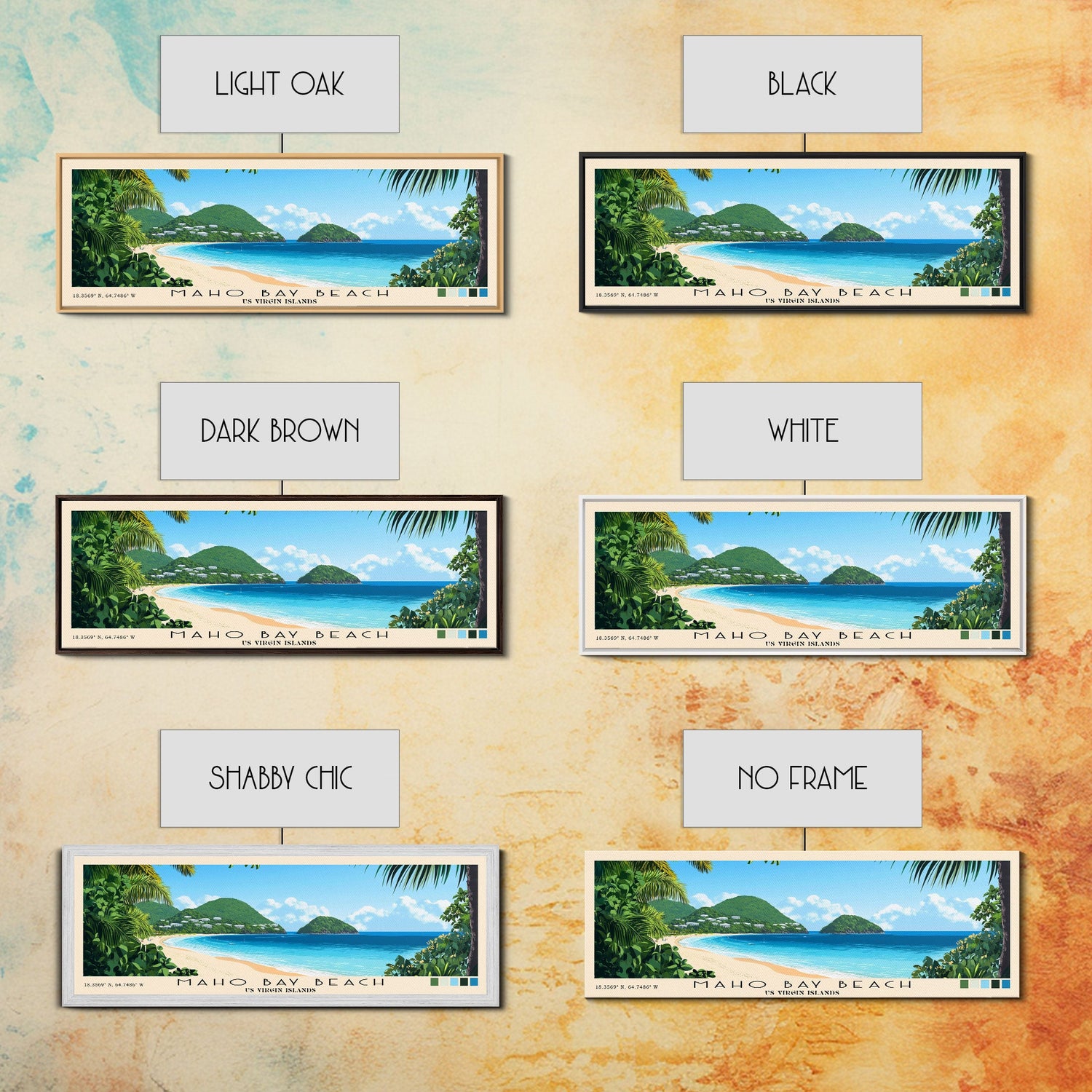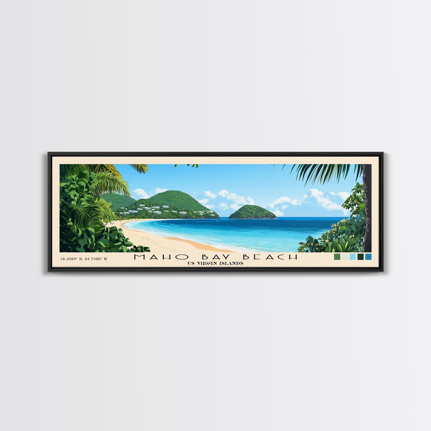 Maho Bay Beach, US Virgin islands Panoramic Beach Print, Vacation Gift, US Virgin islands Wall Art, Framed Canvas Print, Framed Beach Painting