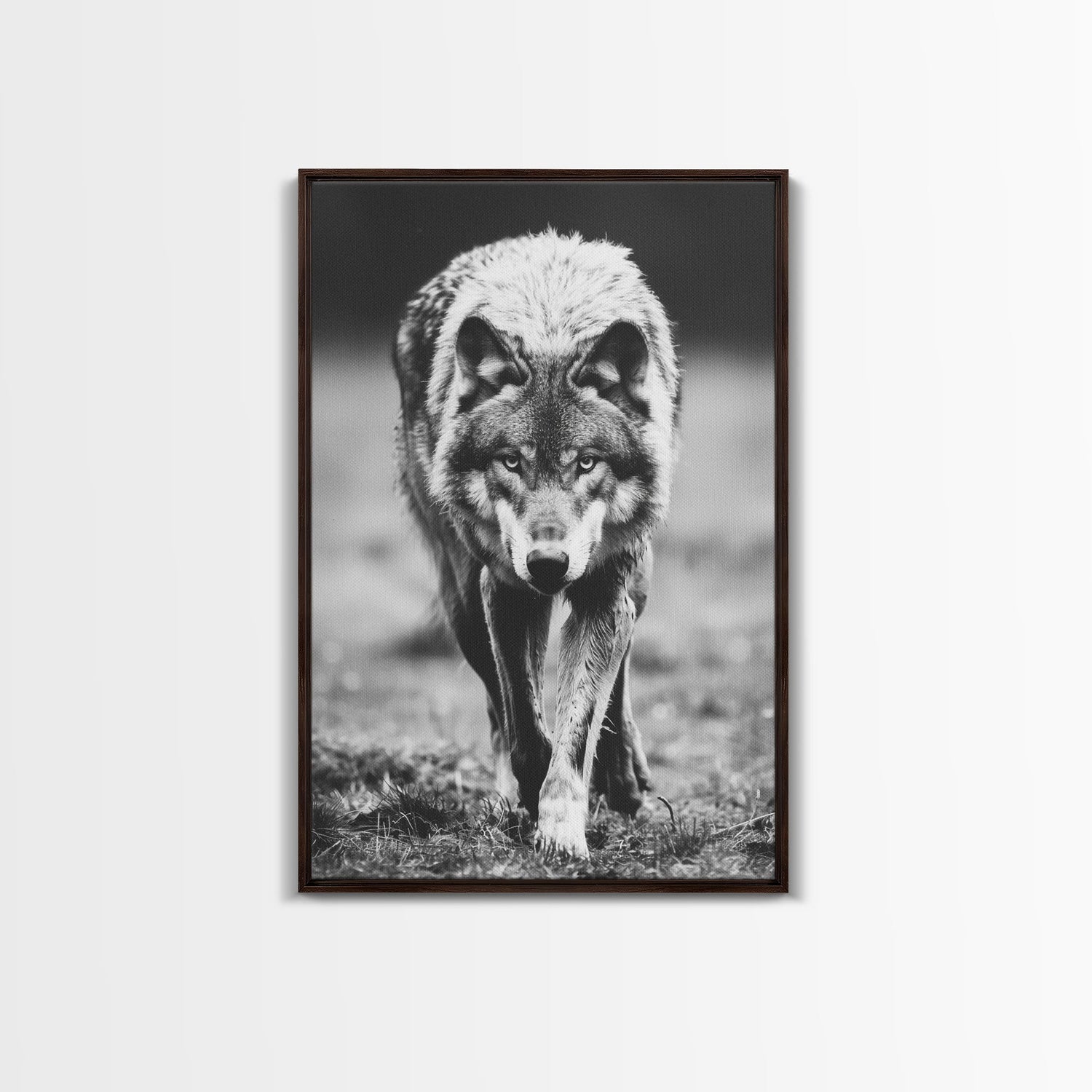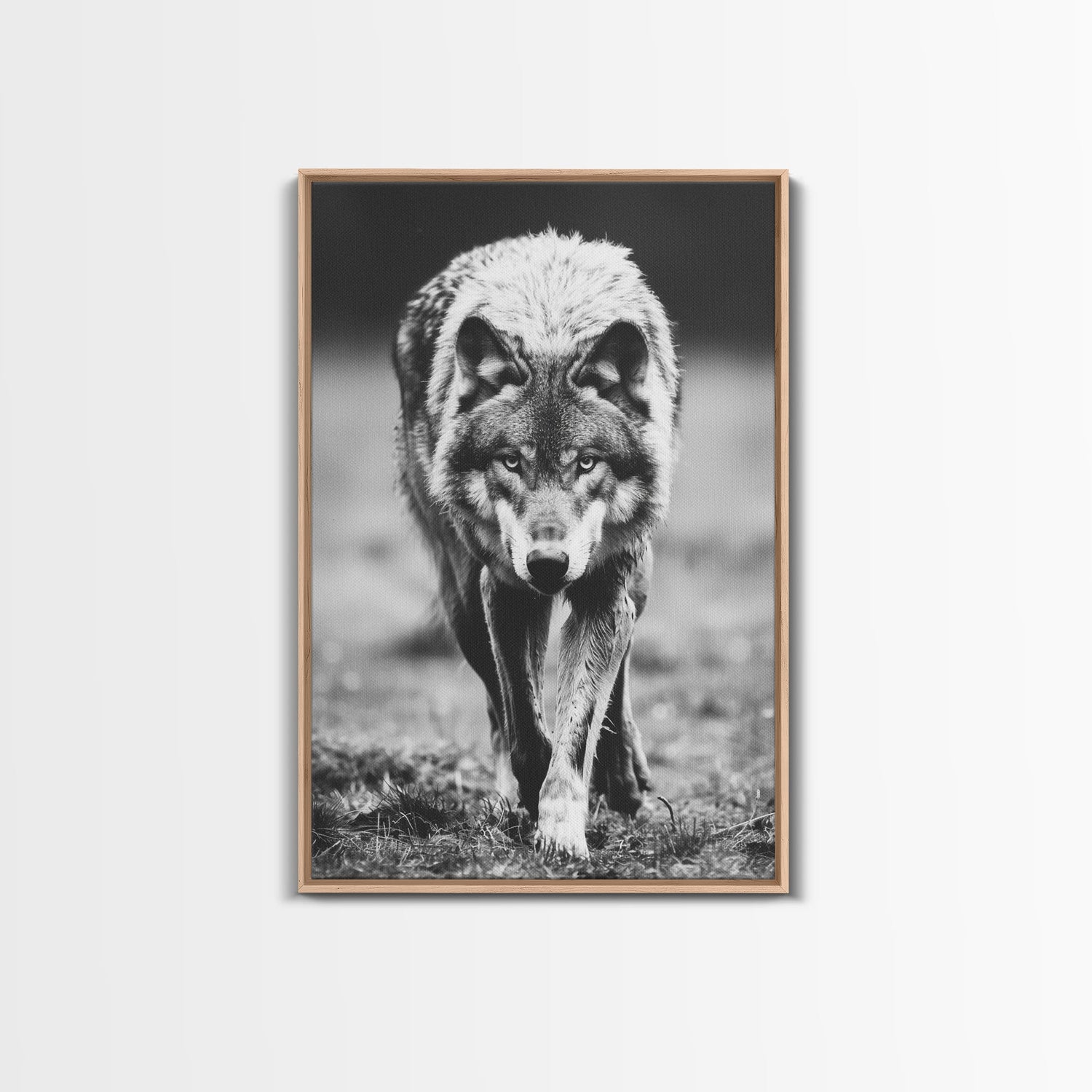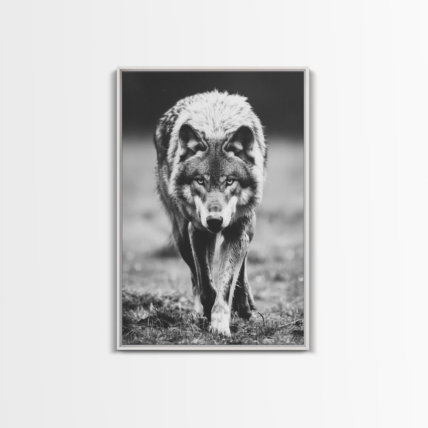 Majestic Wolf Black and White Art Print - Framed Canvas Wall Decor, Wildlife Art for Living Room, Rustic Animal Wall Art for Home