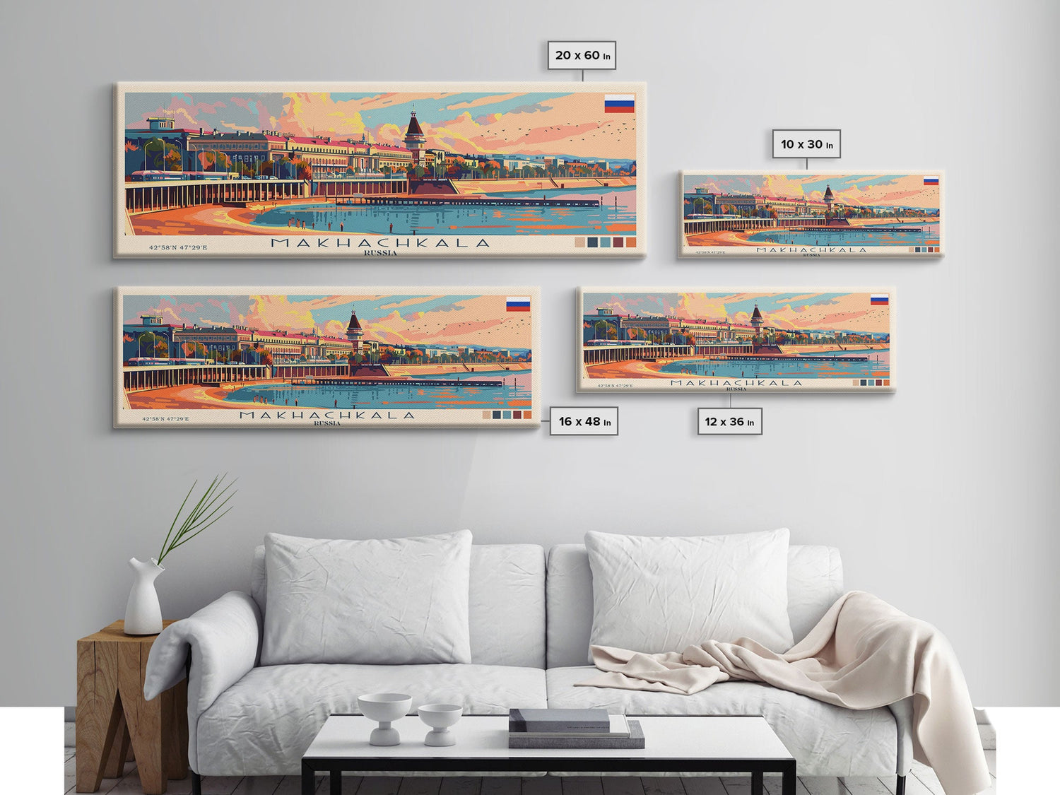 Makhachkala Russia Travel Art, City Art, Framed Canvas Print or Metal Wall Art, Europe Travel Poster, Panoramic Wall Art, Extra Wide Wall Art