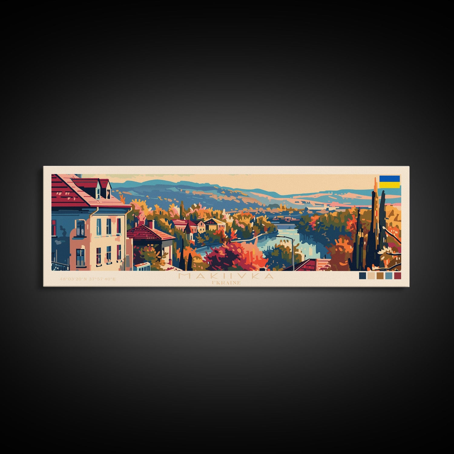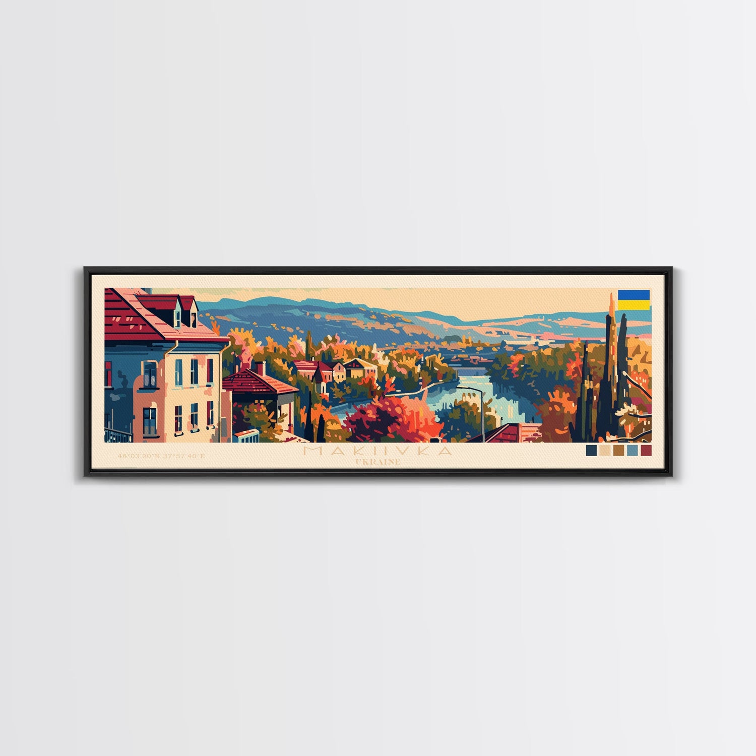 Makiivka Ukraine Panoramic Travel Poster, Framed Canvas Print or Metal Wall Art, Travel Art, Home Decor, Panoramic Painting, Midcentury Art