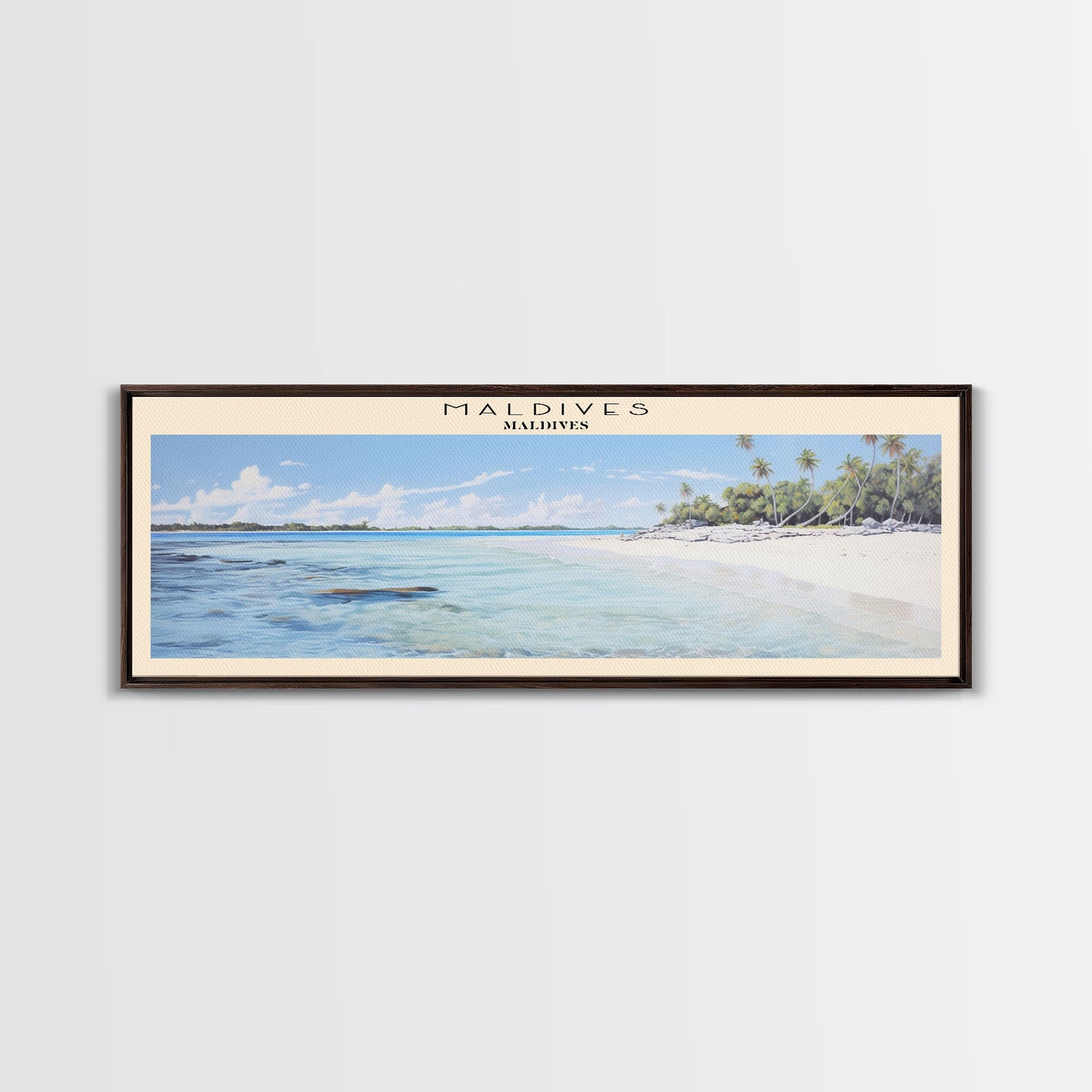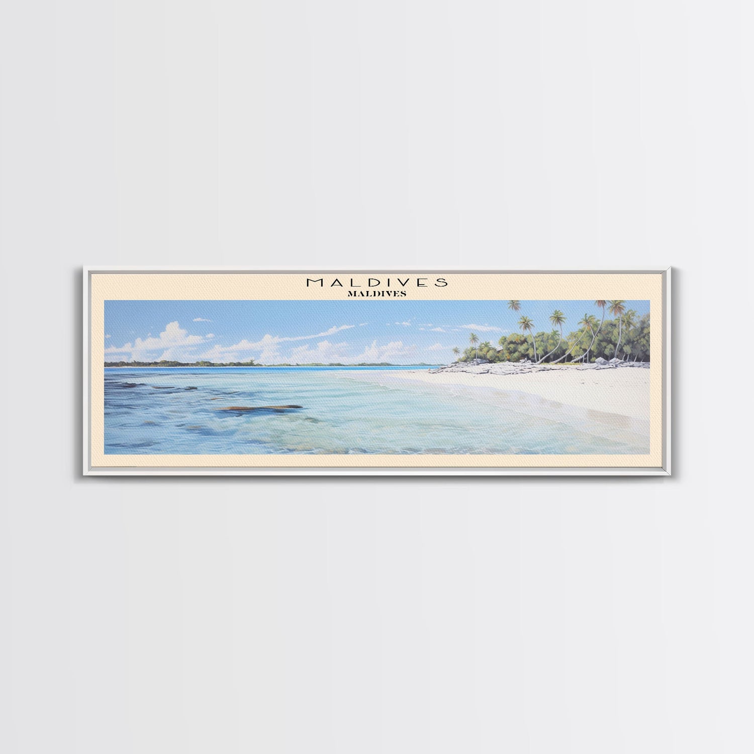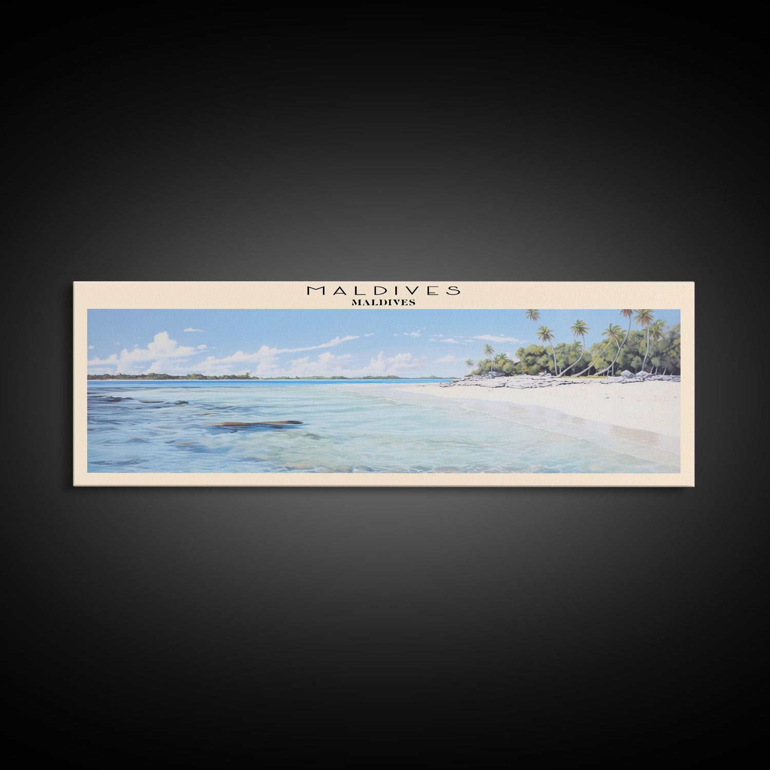 Maldives Travel Poster Print, Framed Canvas Print, COUNTRY Travel Art, Wood Framed Art, Wall Hanging, Home Decor - 10x30 Inches / No Frame - Stretched Canvas Only is backordered and will ship as soon as it is back in stock.