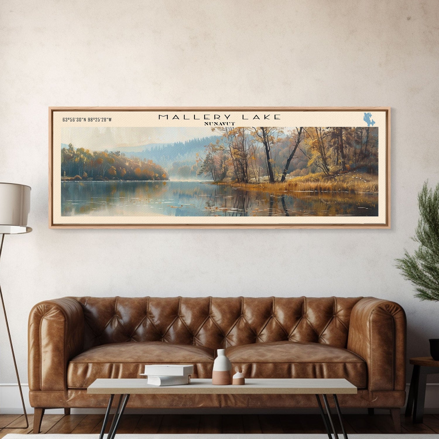 Mallery Lake Framed Canvas Print, Lake House Decor, Panoramic Wall Art, Travel Poster, Scenic Landscape Painting, Rustic Art