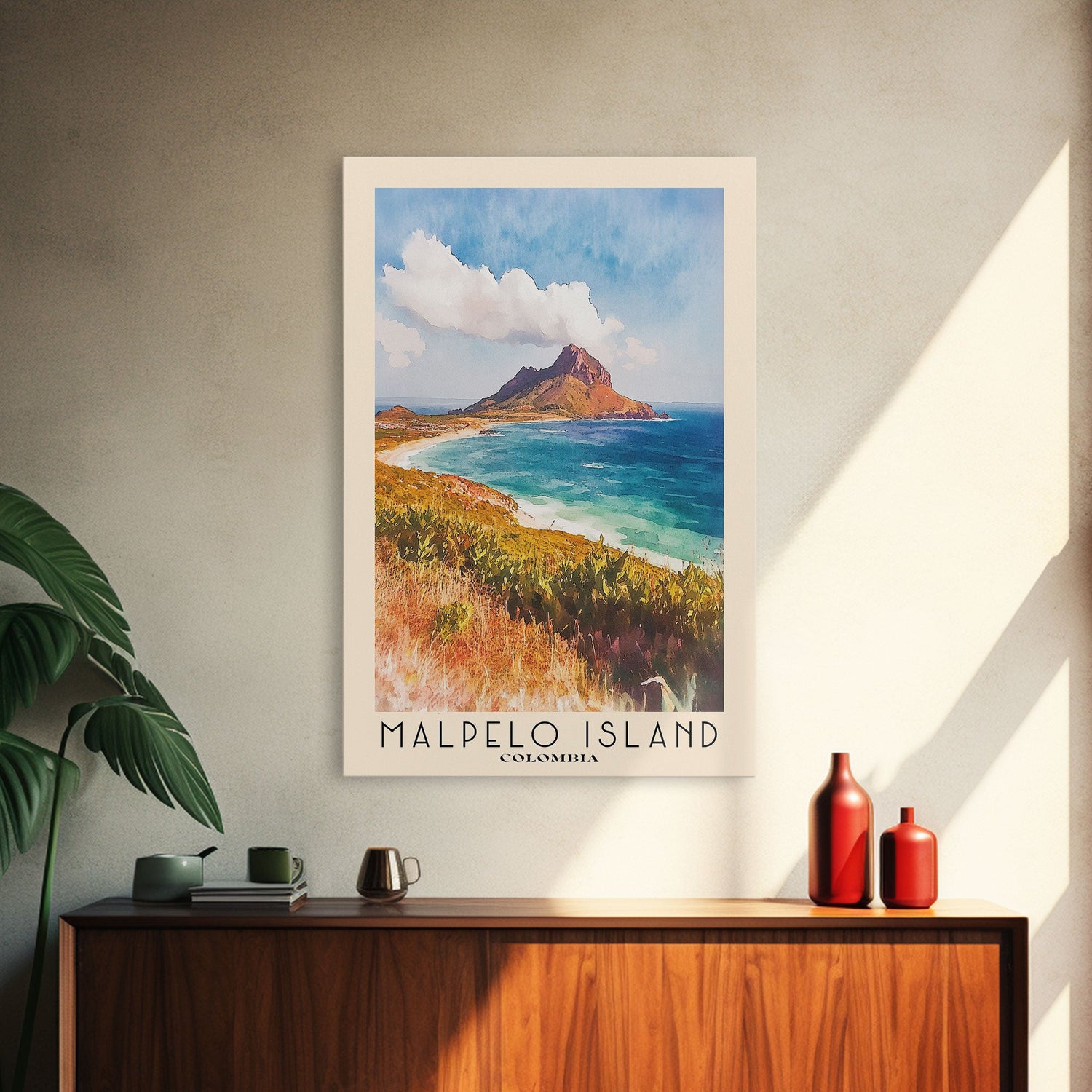Malpelo Island, Colombia Watercolor Print, Vacation Gift, Colombia Wall Art, Beach Painting, Beach Decor, Large Wall Art, Wood Frame Art