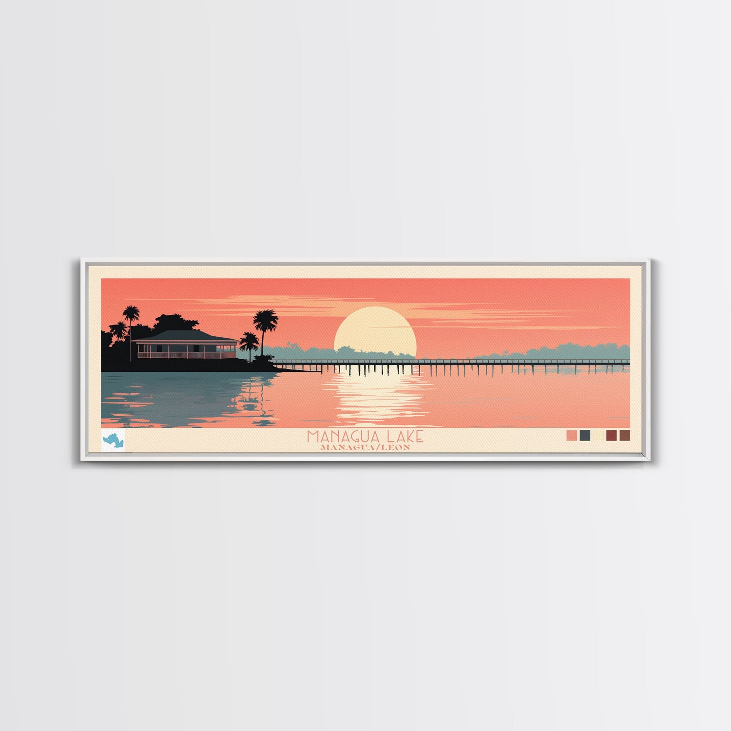 Managua Lake, Managua Leon Panoramic Wall Art Framed Canvas Print, Midcentury Modern, Pop Art, Home Decor, Travel Poster, Bedroom Art