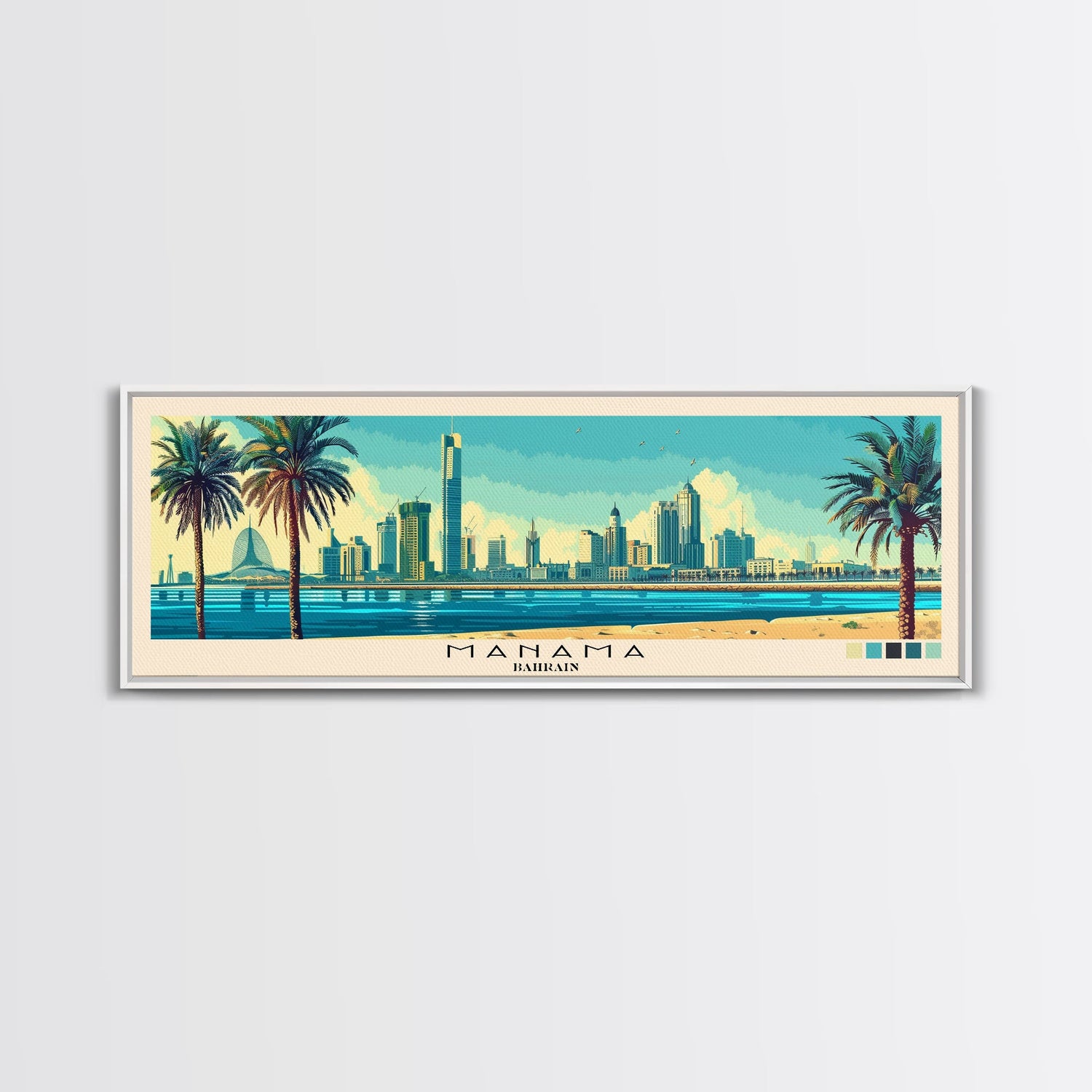 Manama, Bahrain Panoramic Canvas Print, Manama, Bahrain Painting, Bahrain Art, Manama Travel Poster, Travel Art, Guest Room Painting