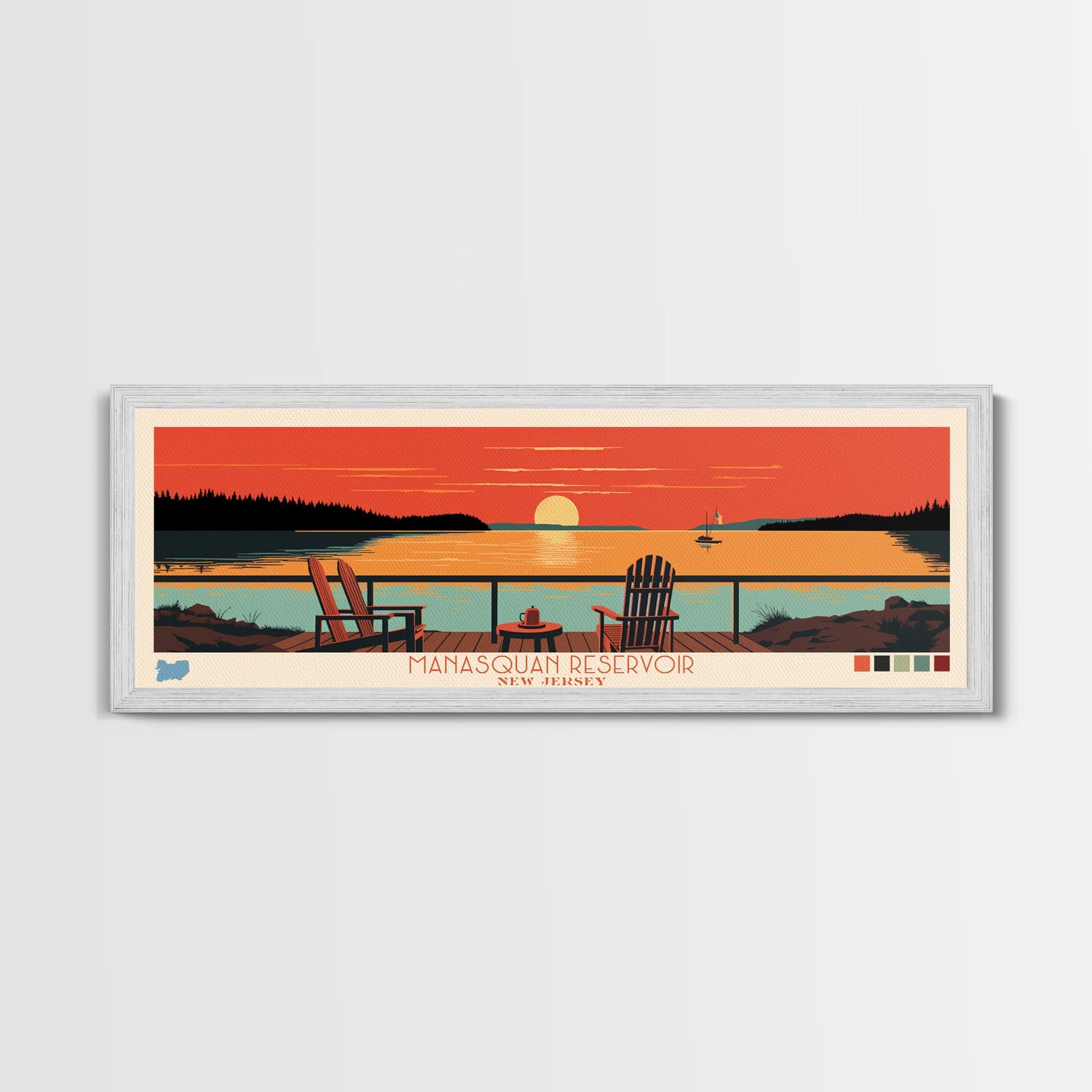 Manasquan Reservoir, New Jersey Panoramic Wall Art Framed Canvas Print, Midcentury Modern, Pop Art, Home Decor, Travel Poster, Living Room Art - 10x30 Inches / No Frame - Stretched Canvas Only is backordered and will ship as soon as it is back in stock.