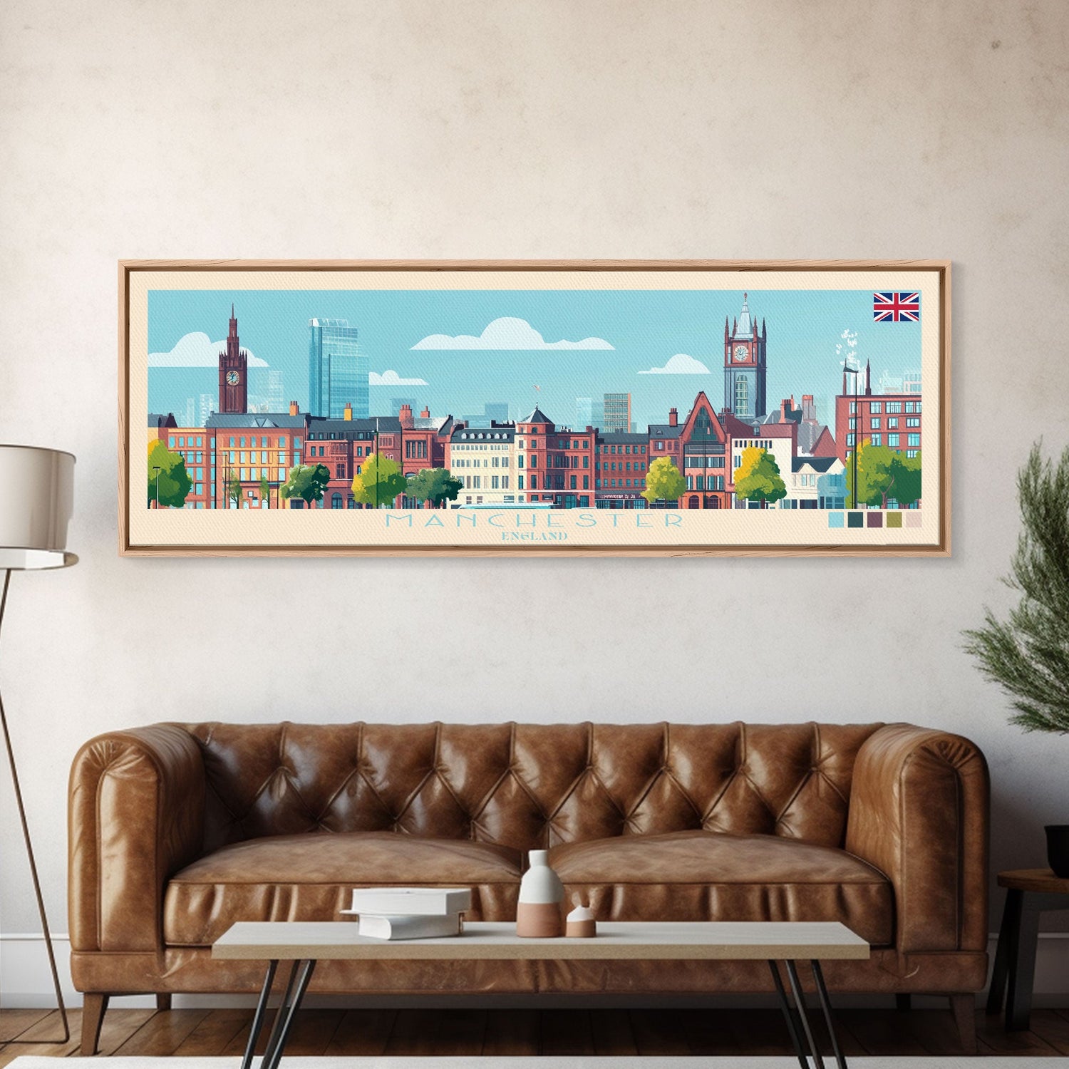 Manchester, England Panoramic Travel Poster Canvas Print, Manchester, England Painting, England Art, Manchester Travel Art, Guest Room Painting