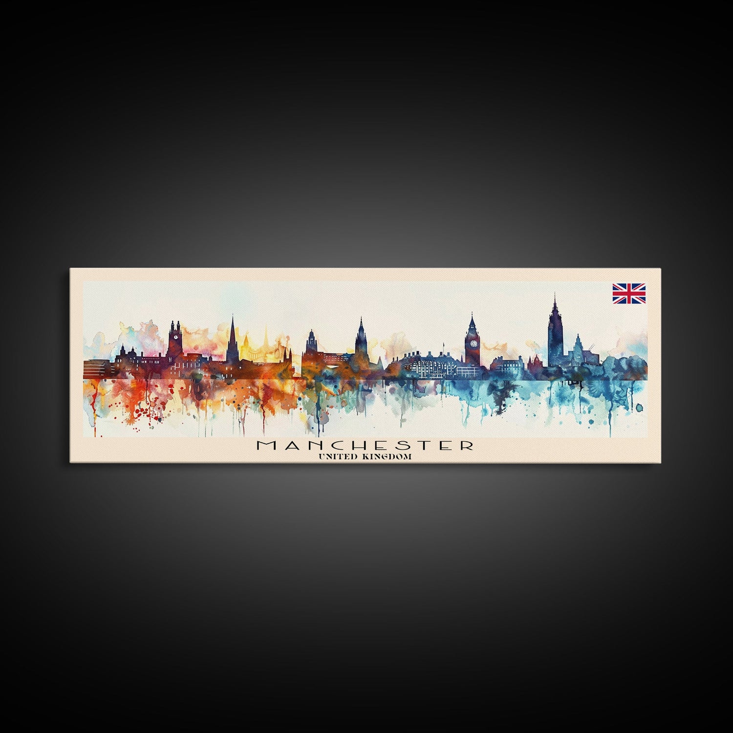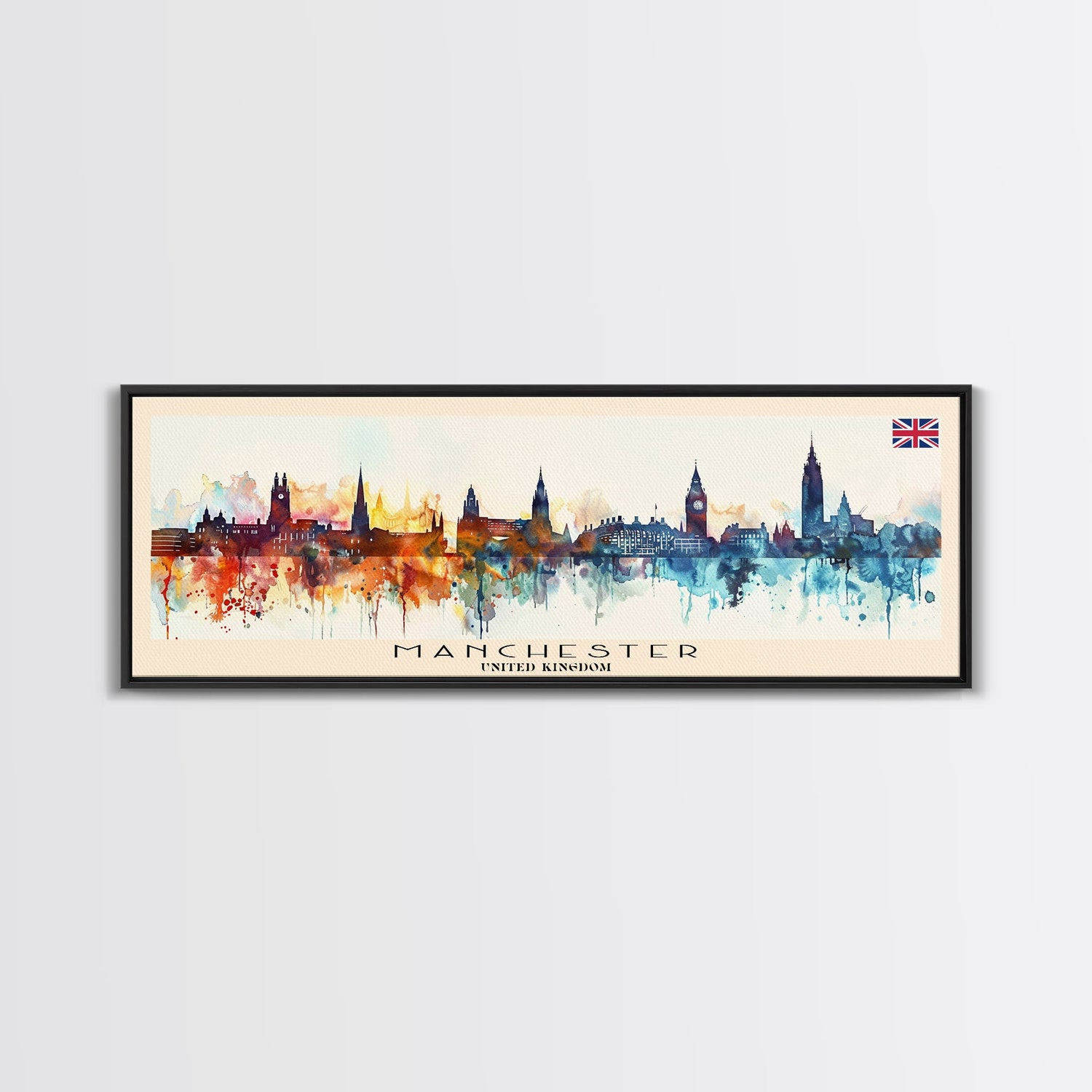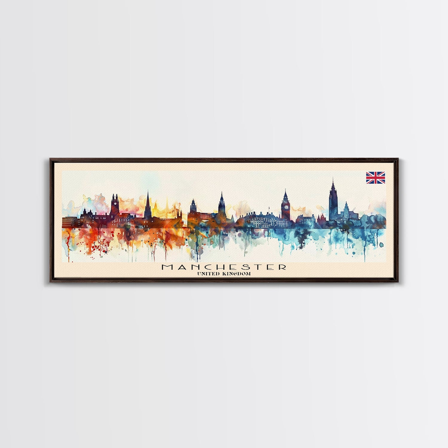 Manchester United Kingdom Panoramic Travel Poster, Framed Canvas Print or Metal Wall Art, Travel Art, Home Decor, Panoramic Painting, Midcentury Art