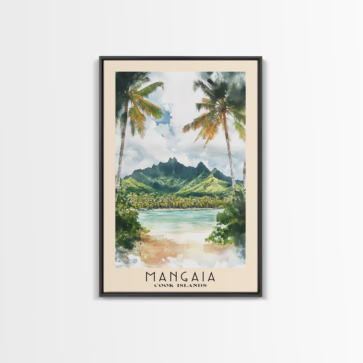 Mangaia, Cook Islands Watercolor Print, Vacation Gift, Cook Islands Wall Art, Beach Painting, Beach Decor, Large Wall Art, Wood Frame Art