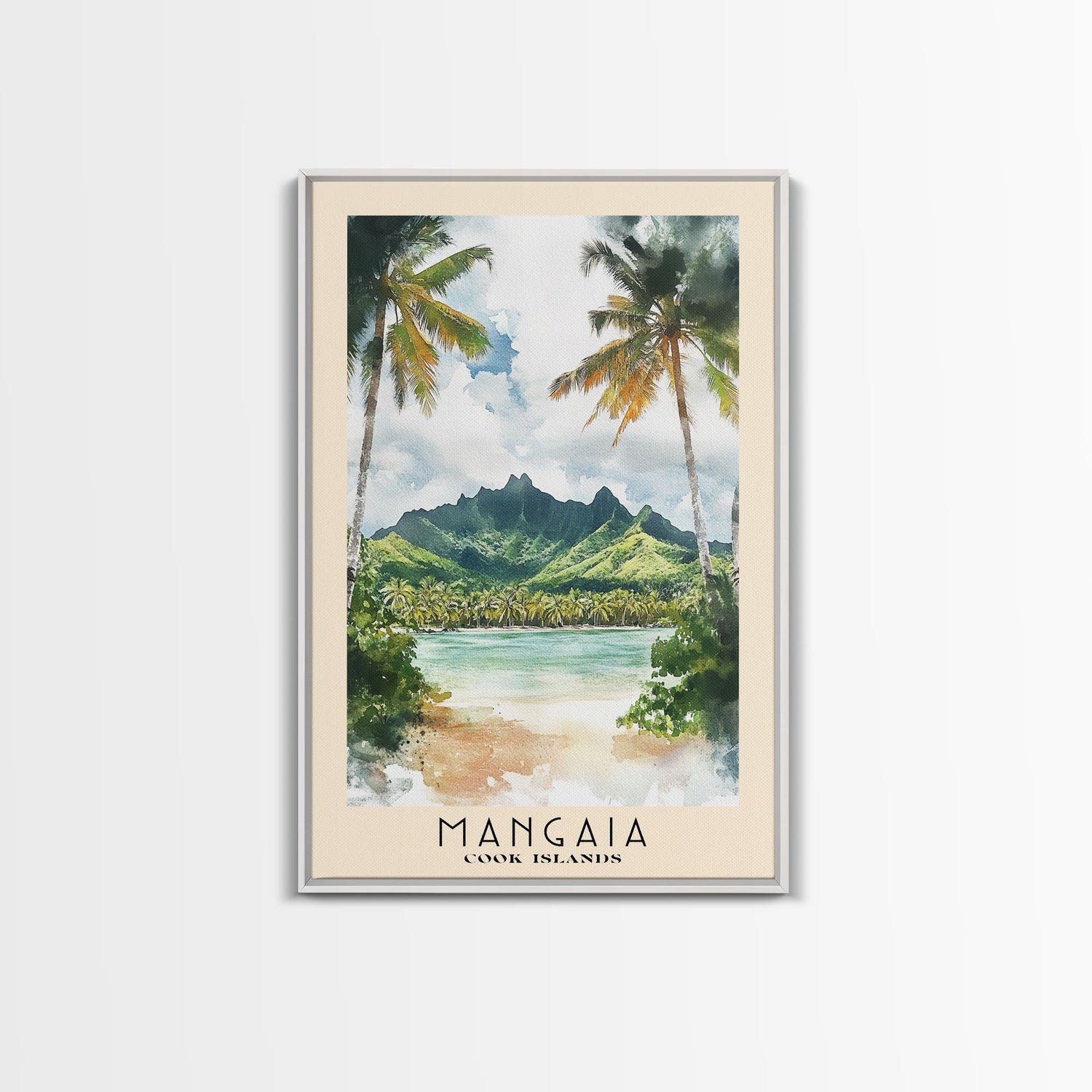 Mangaia, Cook Islands Watercolor Print, Vacation Gift, Cook Islands Wall Art, Beach Painting, Beach Decor, Large Wall Art, Wood Frame Art - 8x12 Inches / No Frame - Stretched Canvas Only is backordered and will ship as soon as it is back in stock.