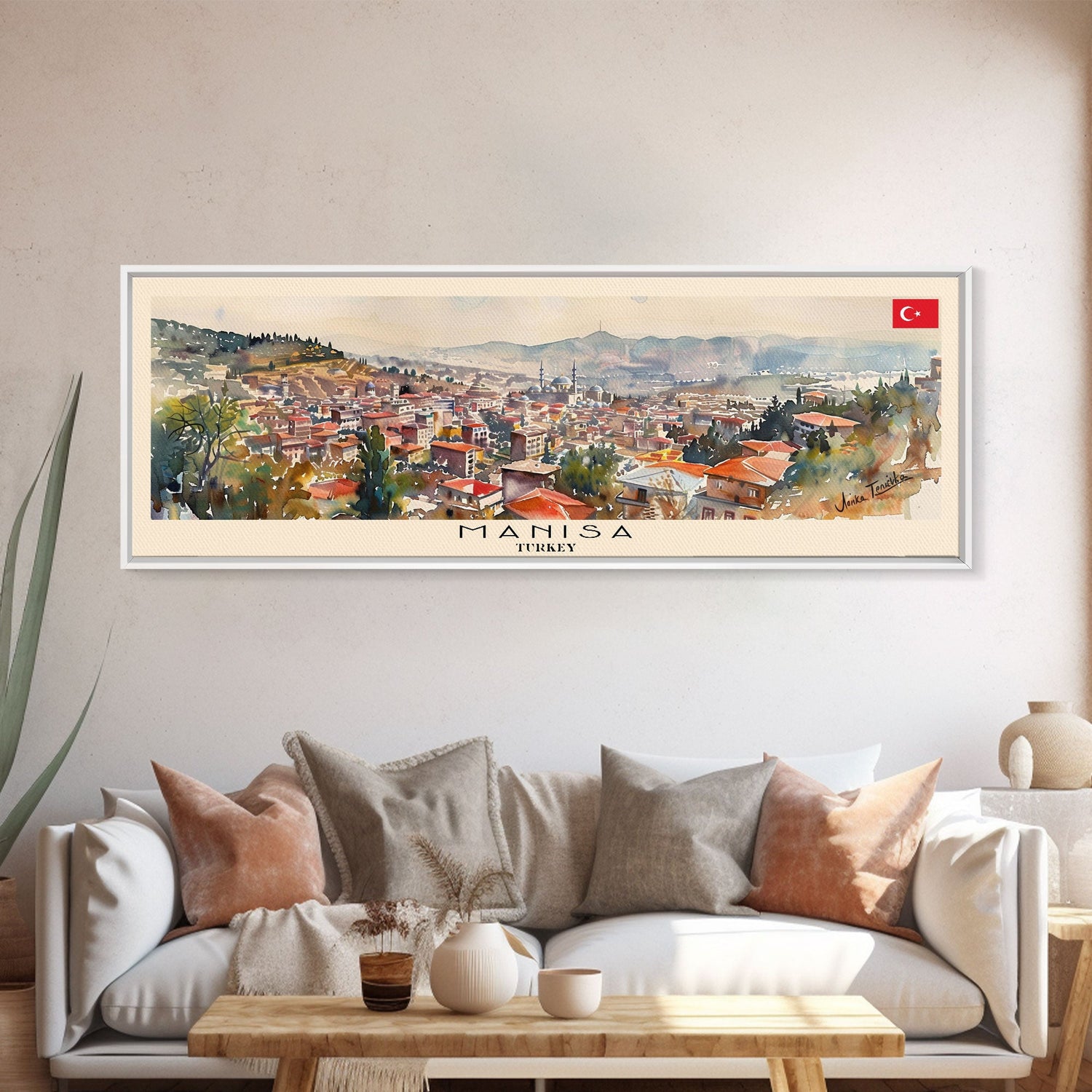 Manisa Turkey Wall Art, Panoramic Travel Poster, Panoramic Framed Canvas Print, City Wall Art, Wall Hanging Home Decor, Travel Art