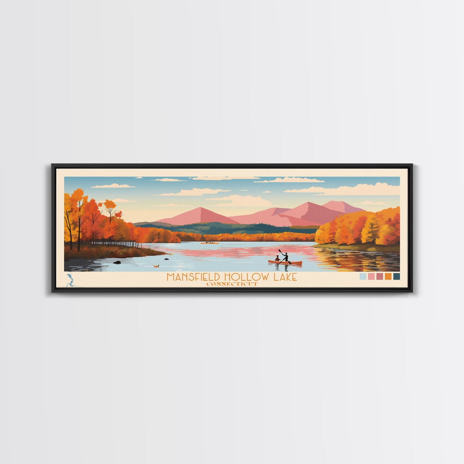 Mansfield Hollow Lake, Connecticut Panoramic Wall Art Framed Canvas Print, Midcentury Modern, Pop Art, Home Decor, Travel Poster, Living Room Art