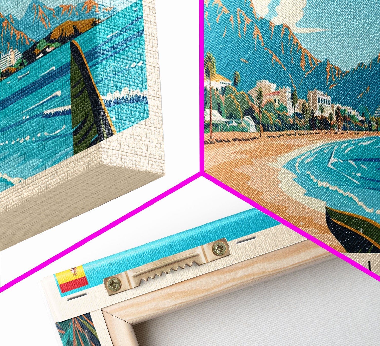 Most of our canvases are made in the USA, with the exception of canvases ordered with the light oak unstained frames, and any large canvases (24x48, 30x60, 16x48 and 20x60) ordered WITH a frame. These are temporarily made in and shipped from Europe, while we try to find a more consistent supplier in the USA.