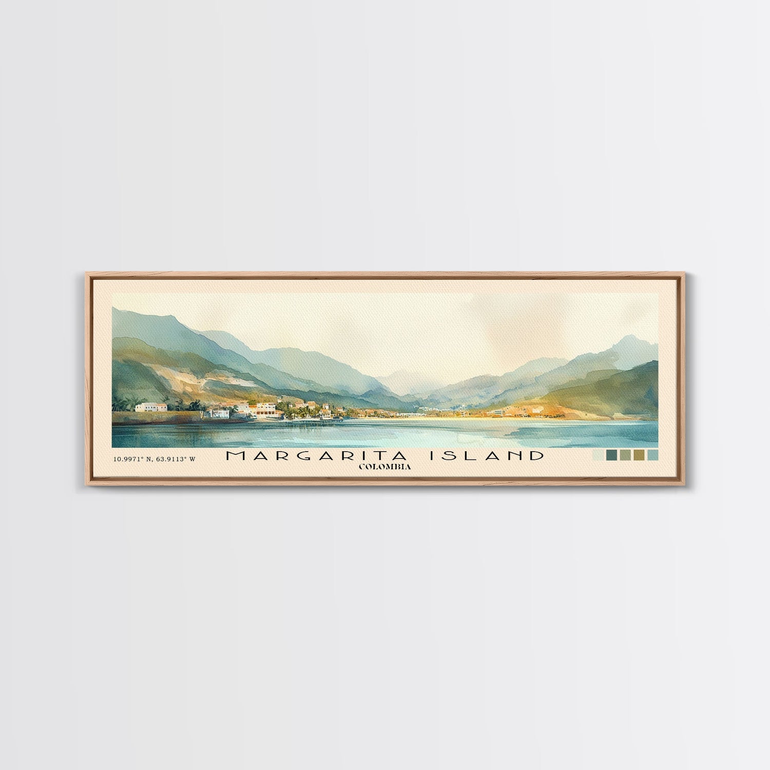Margarita Island, Colombia Watercolor Print, Vacation Gift, Colombia Wall Art, Beach Painting, Beach Decor, Large Wall Art, Wood Frame Art - 10x30 Inches / Gallery Wrap Canvas - Ready To Hang is backordered and will ship as soon as it is back in stock.