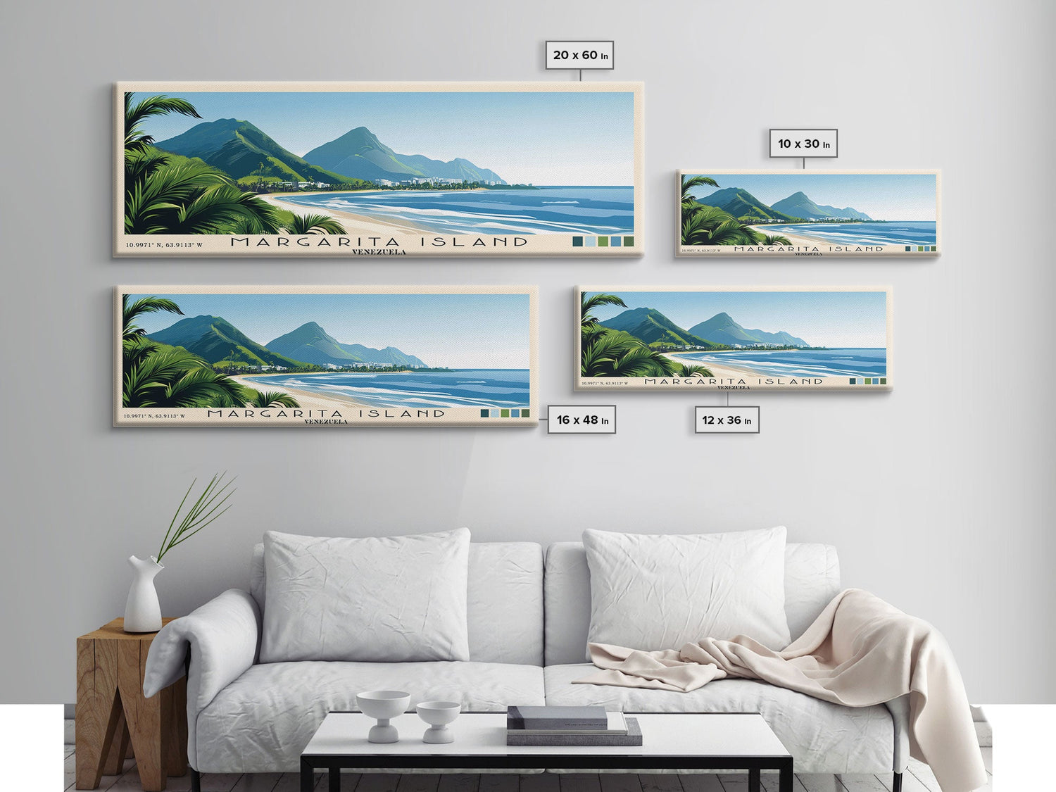 Margarita Island, Venezuela Panoramic Beach Print, Vacation Gift, Venezuela Wall Art, Beach Painting, Beach Decor, Beach Painting - 10x30 Inches / No Frame - Stretched Canvas Only is backordered and will ship as soon as it is back in stock.