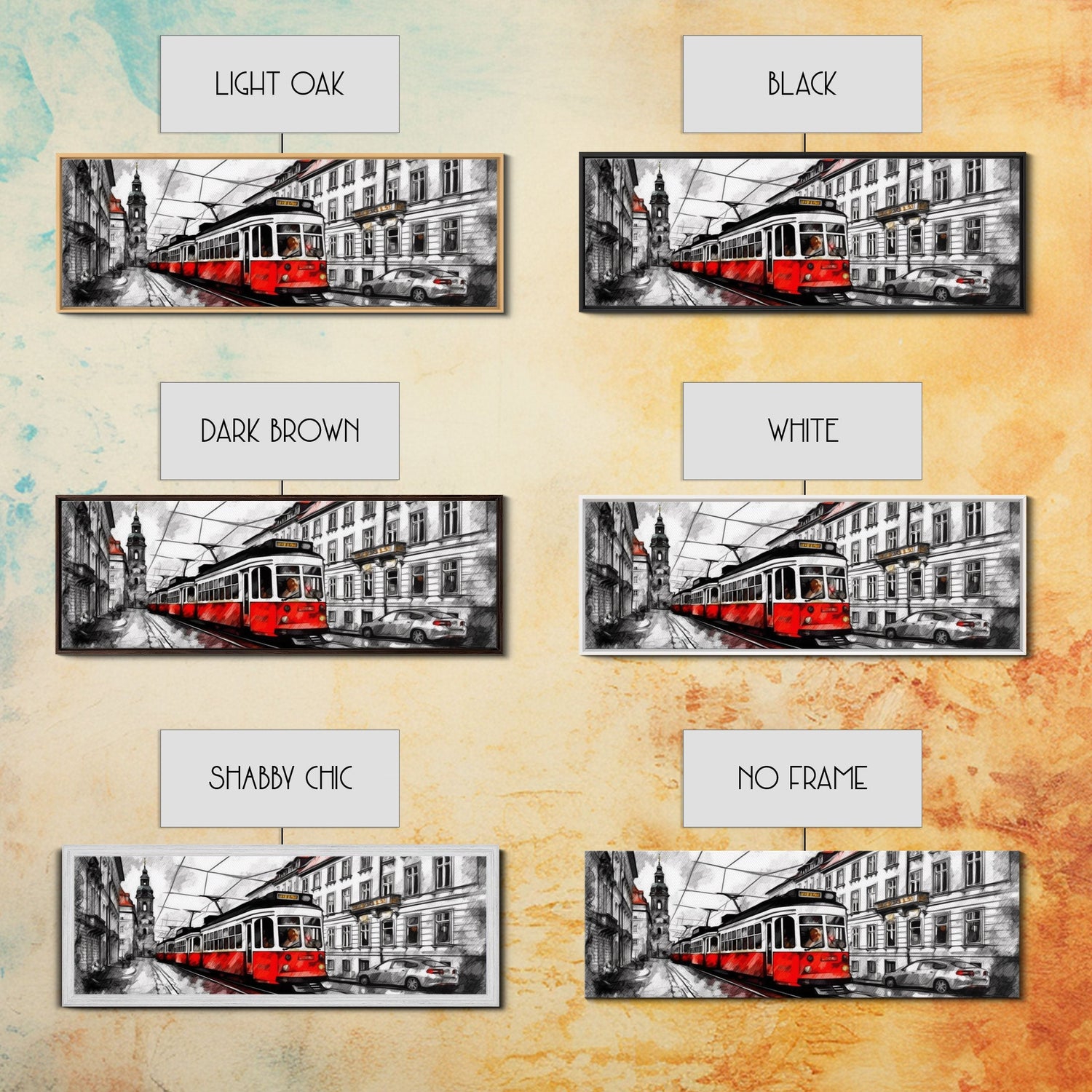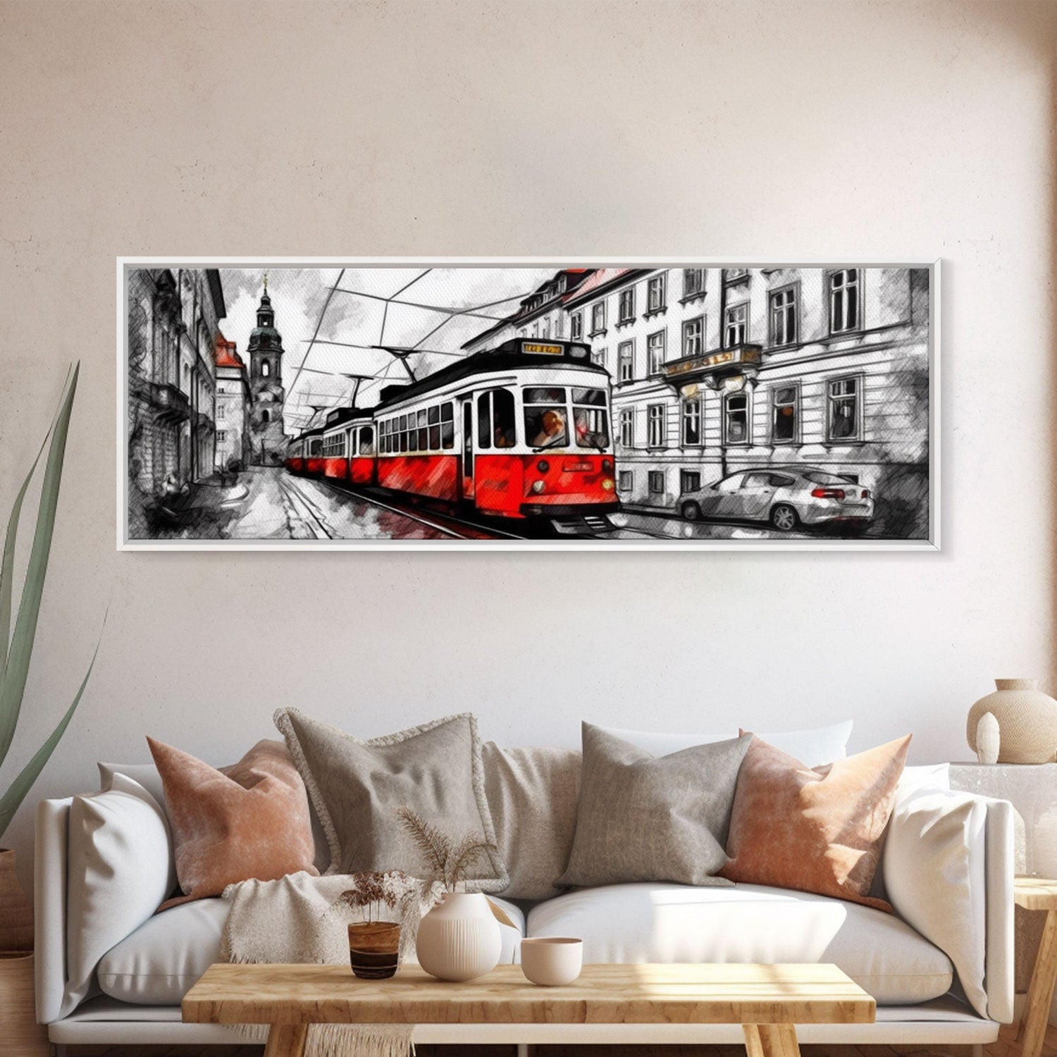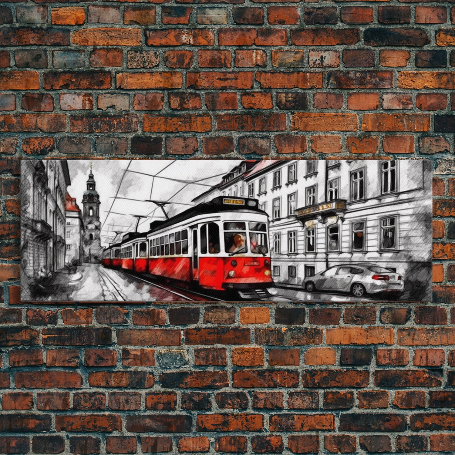 Marker Sketch Wall Art, Streetcar Wall Decor, Bell Tower, Street Art Print, Wall Art Decor, Panoramic, Framed Art, Canvas Print, Landscape