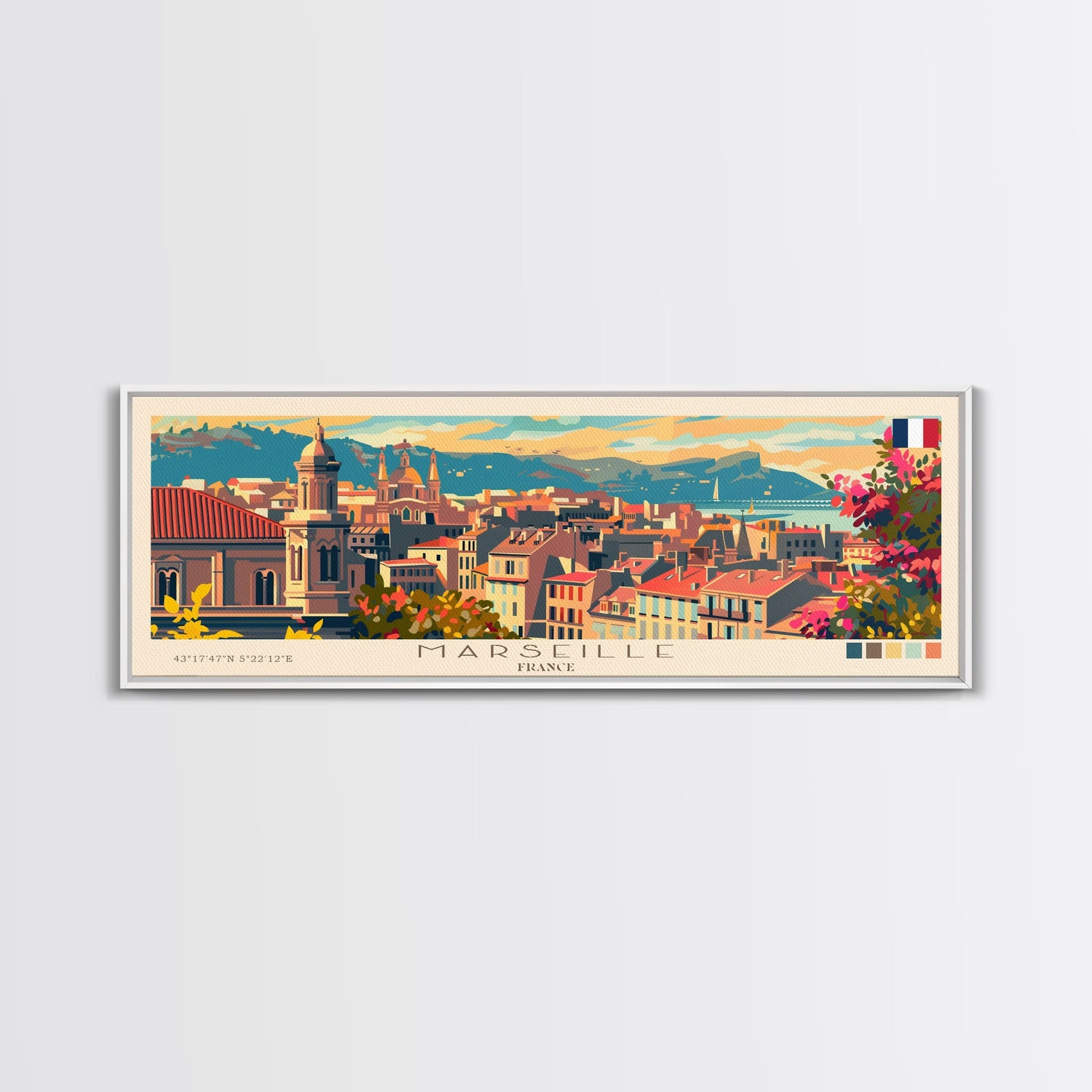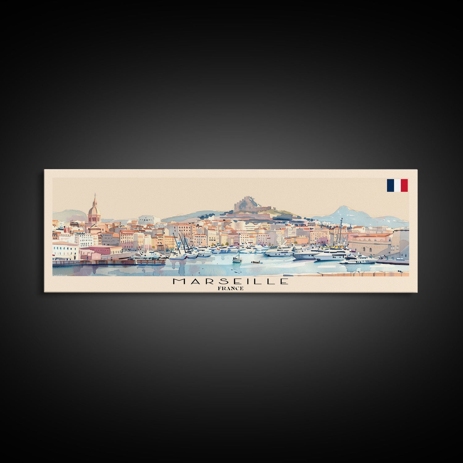 Marseille France Travel Print Wall Art, Panoramic City Art, Travel Art, Wall Decor, Vacation Gift, Framed Canvas Print Or Metal Art