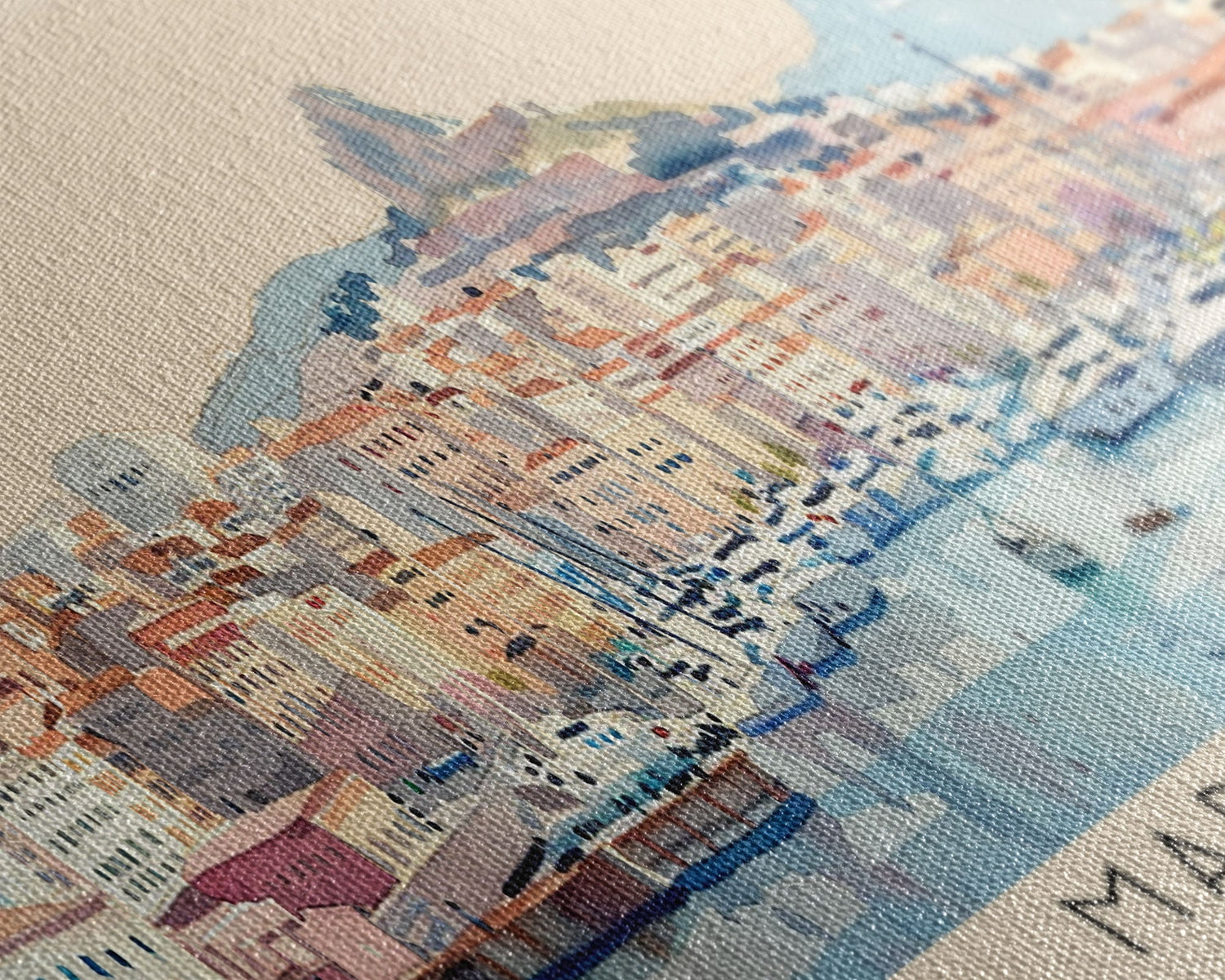 Most of our canvases are made in the USA, with the exception of canvases ordered with the light oak unstained frames, and any large canvases (24x48, 30x60, 16x48 and 20x60) ordered WITH a frame. These are temporarily made in and shipped from Europe, while we try to find a more consistent supplier in the USA.
