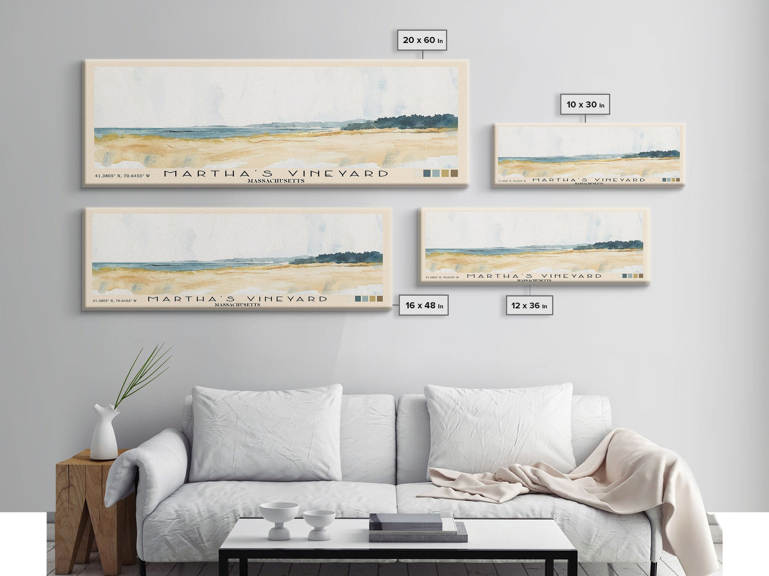 Martha’s Vineyard, Massachusetts Watercolor Beach Print, Vacation Gift, Massachusetts Wall Art, Framed Canvas Print, Framed Beach Painting - 10x30 Inches / No Frame - Stretched Canvas Only is backordered and will ship as soon as it is back in stock.