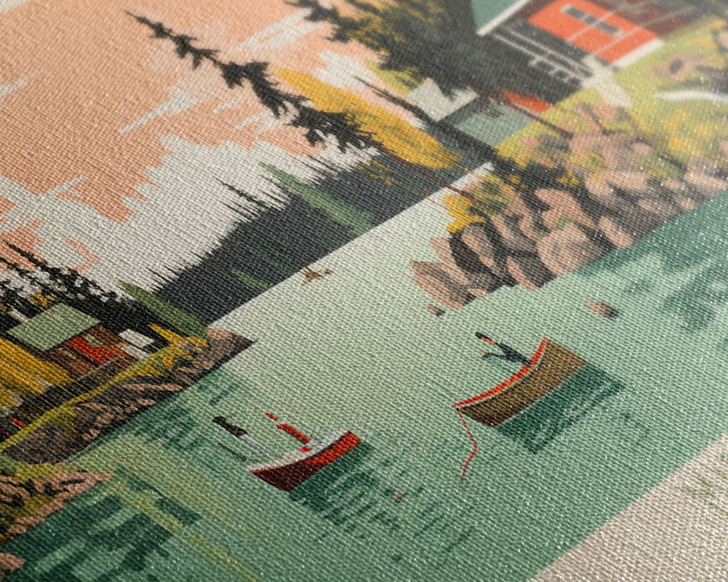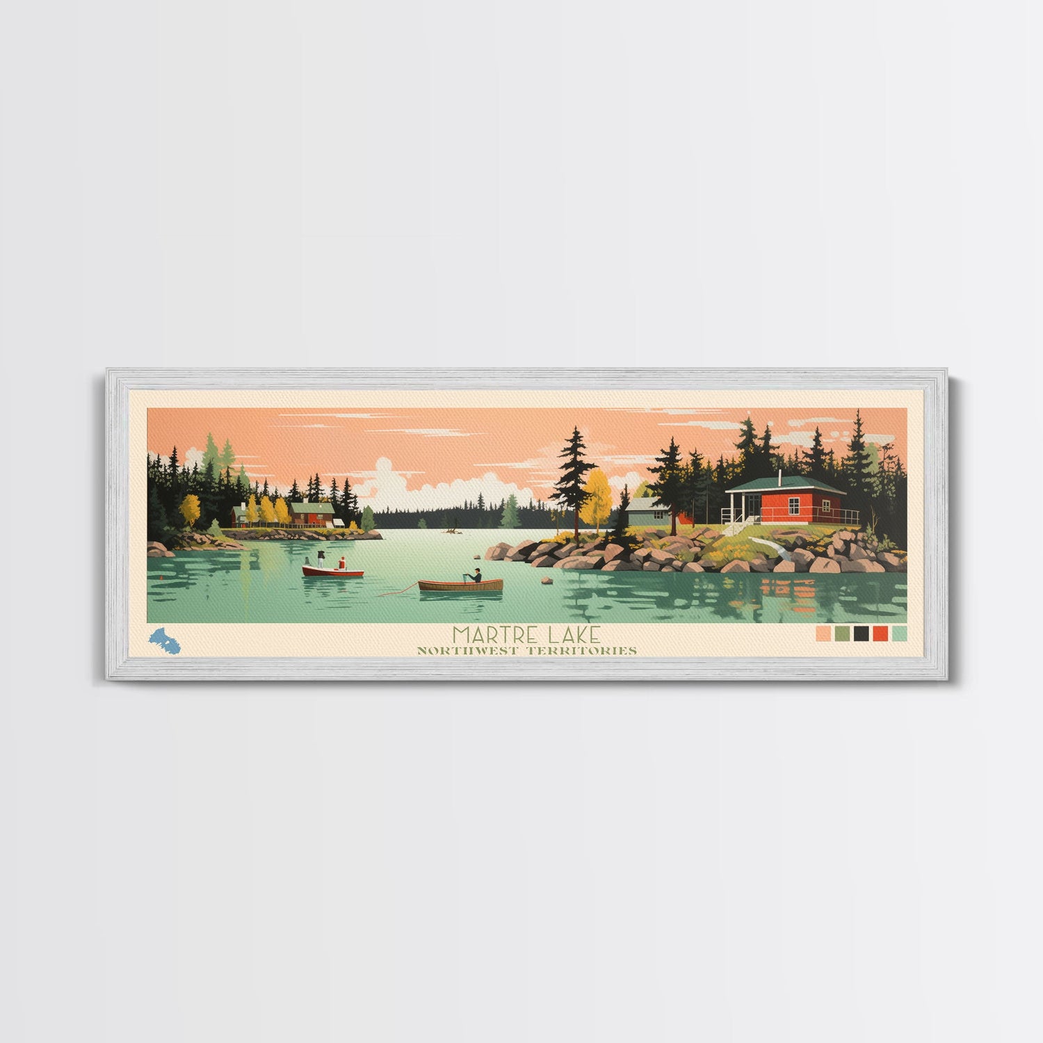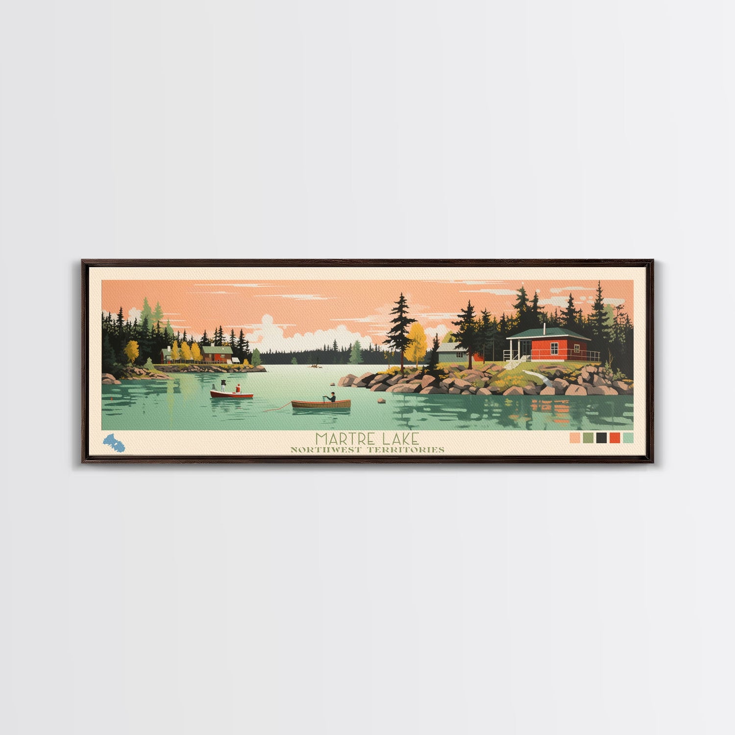 Martre Lake, Northwest Territories Panoramic Wall Art Framed Canvas Print, Midcentury Modern, Pop Art, Home Decor, Travel Poster, Living Room Art