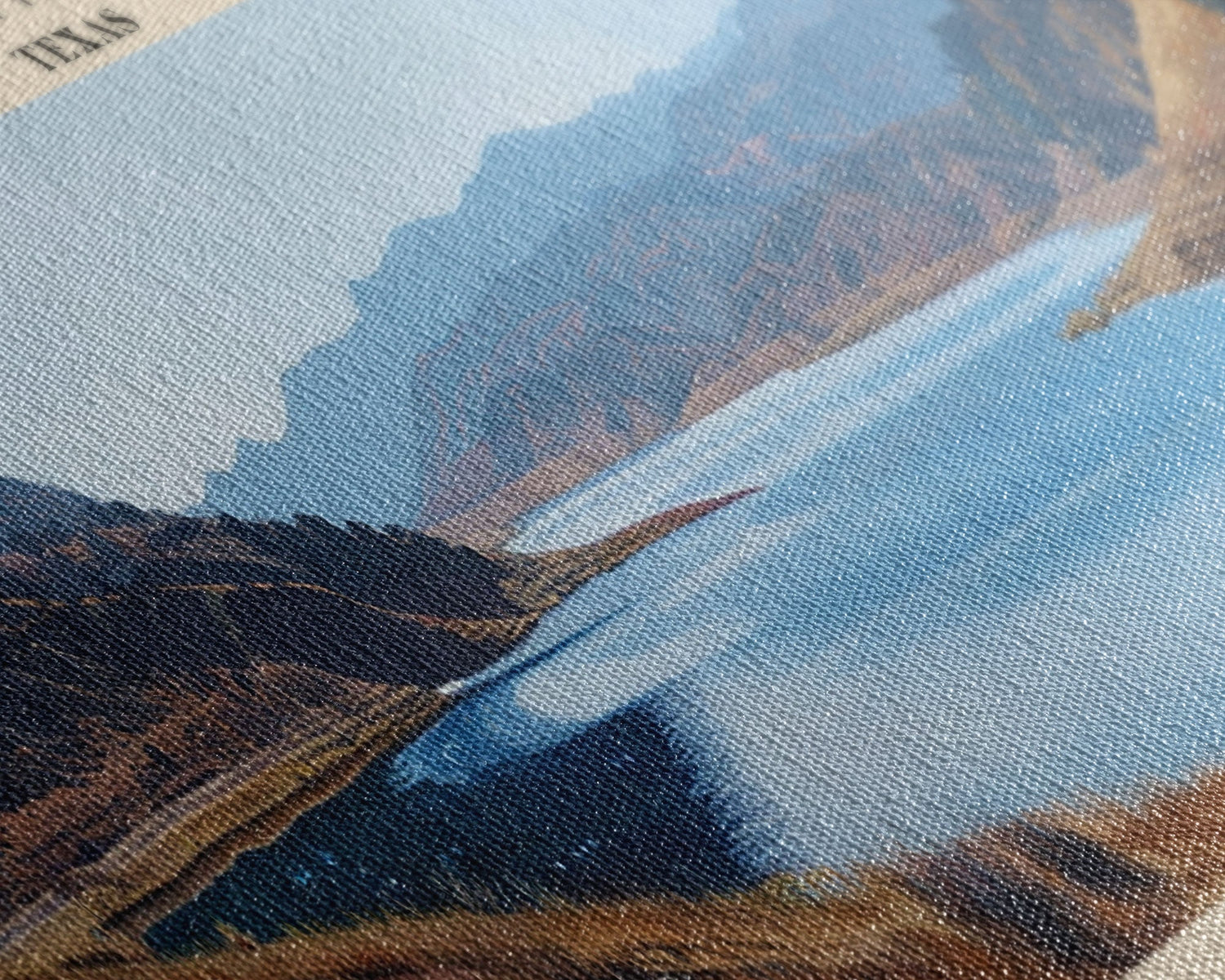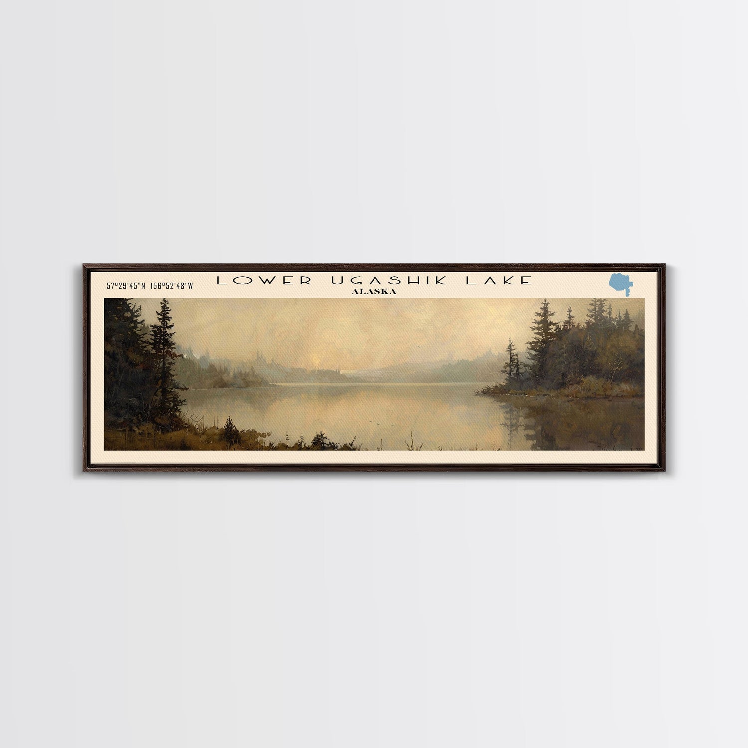 Martre R Gomez Reservoir Framed Canvas Print, Lake House Decor, Panoramic Wall Art, Travel Poster, Scenic Landscape Painting, Contemporary Art