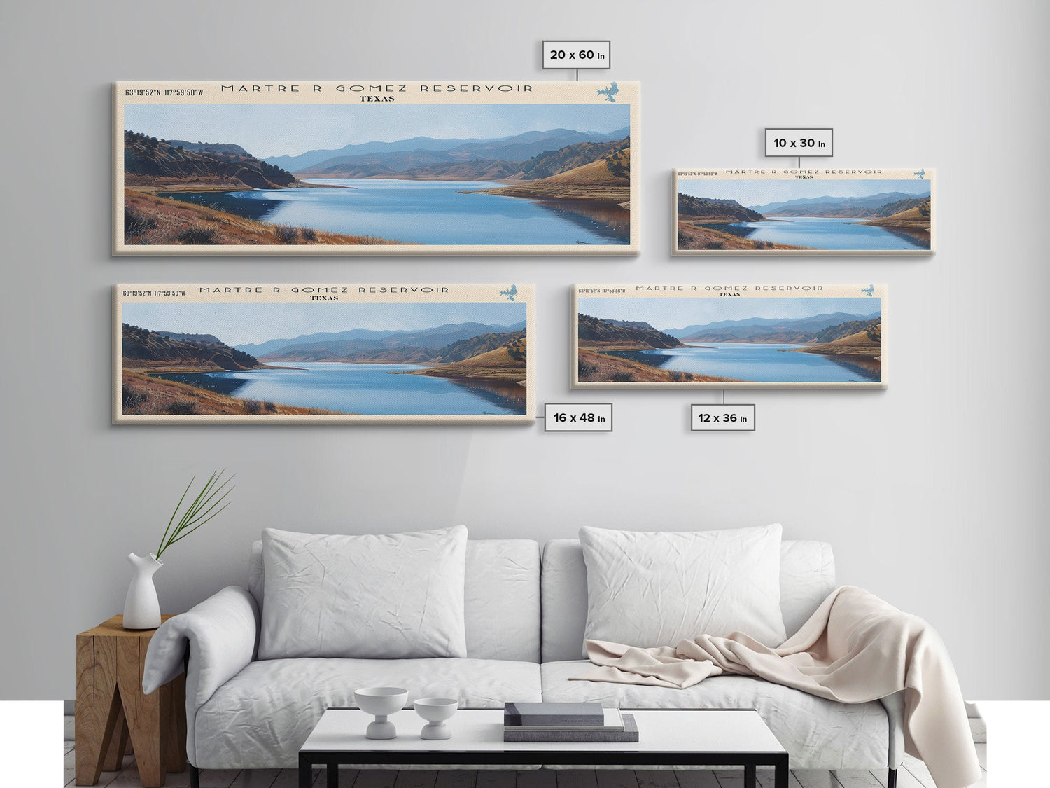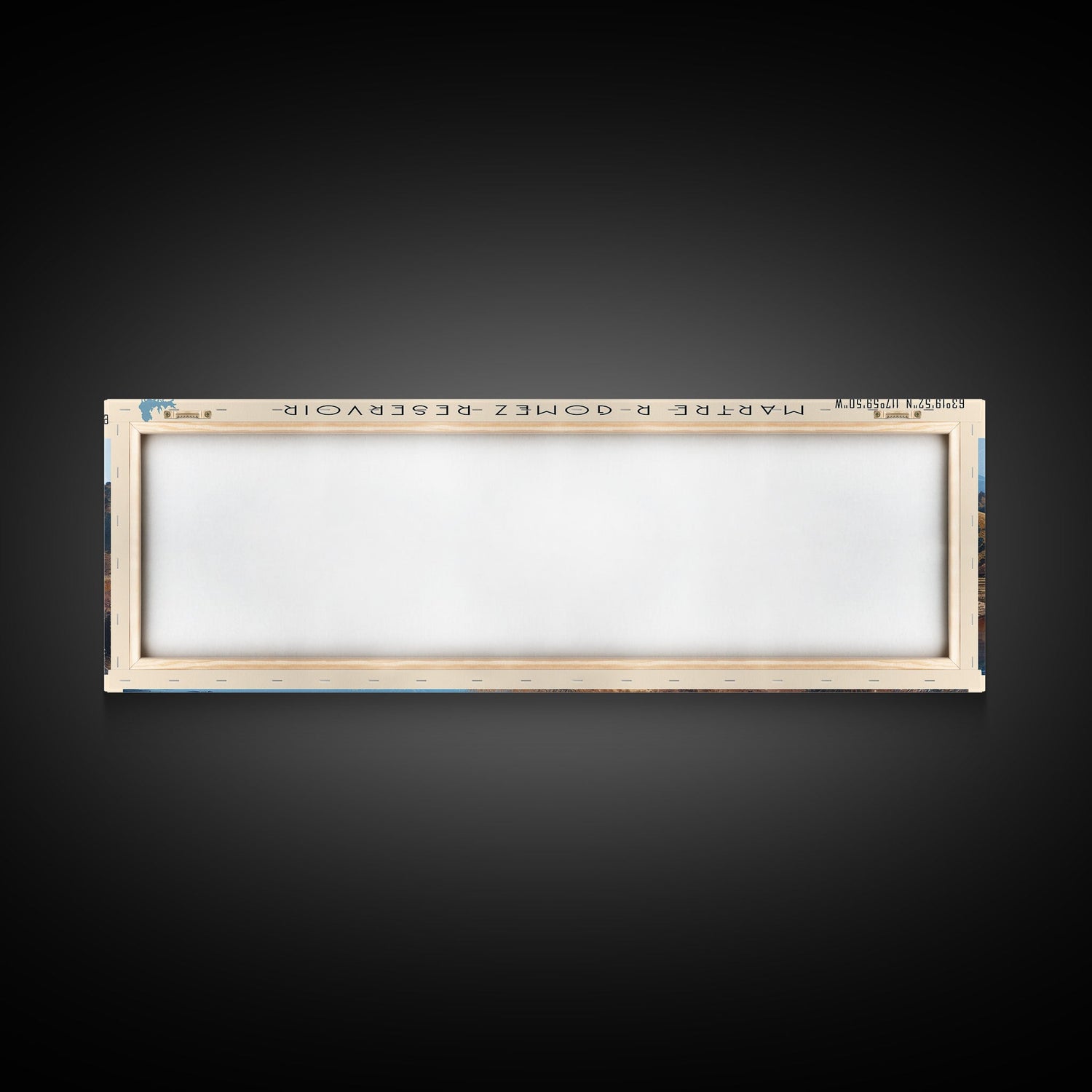 Martre R Gomez Reservoir Framed Canvas Print, Lake House Decor, Panoramic Wall Art, Travel Poster, Scenic Landscape Painting, Contemporary Art - 10x30 Inches / No Frame - Stretched Canvas Only is backordered and will ship as soon as it is back in stock.