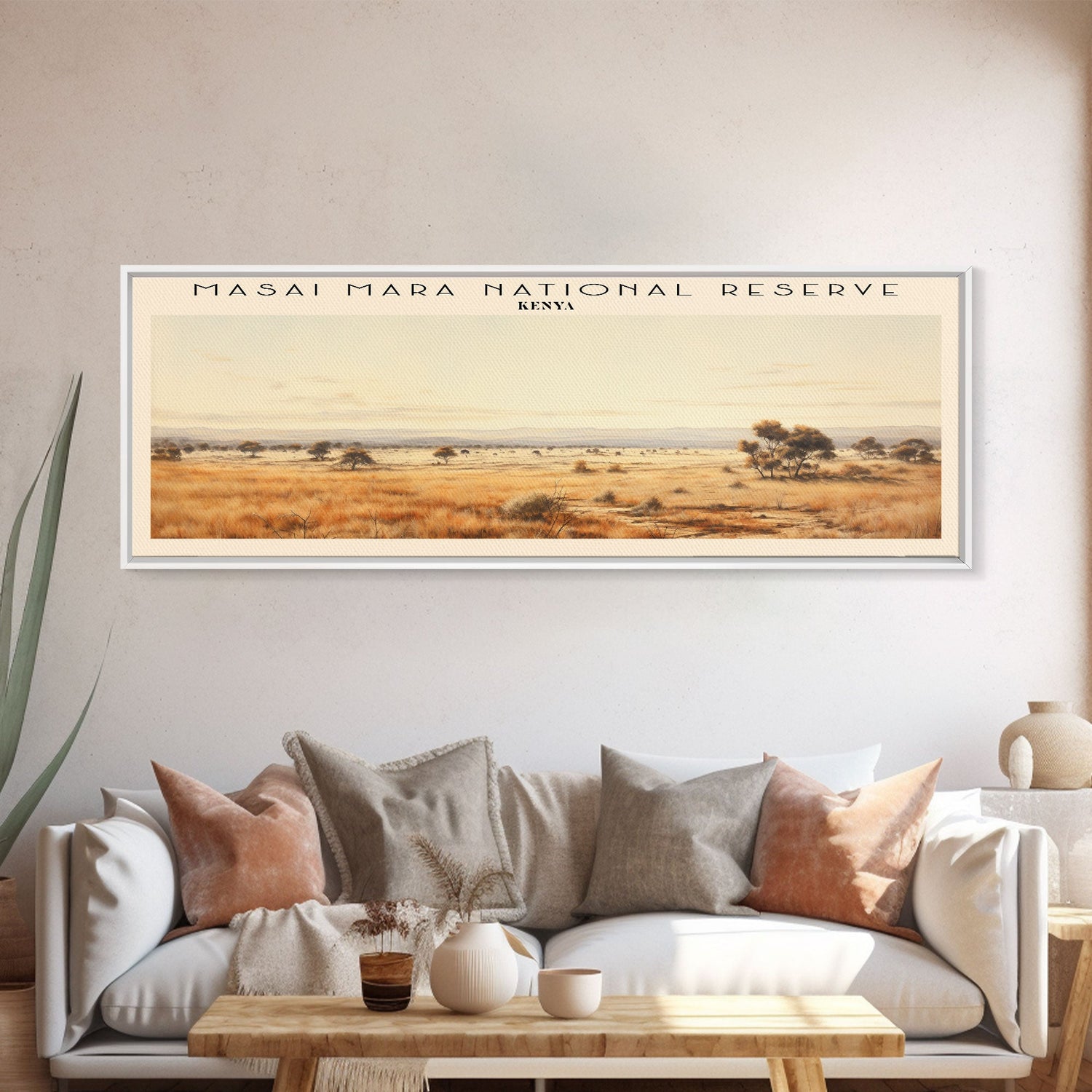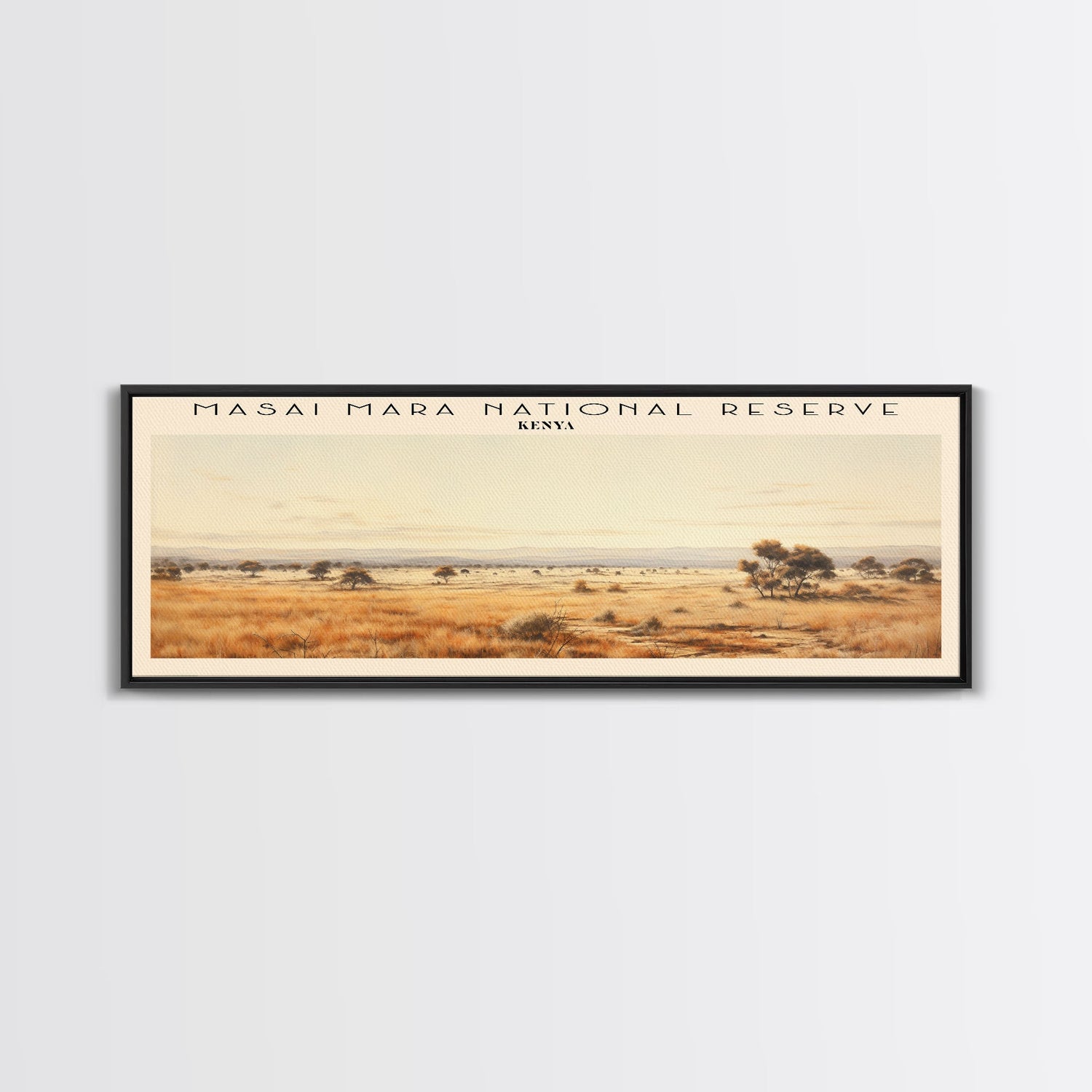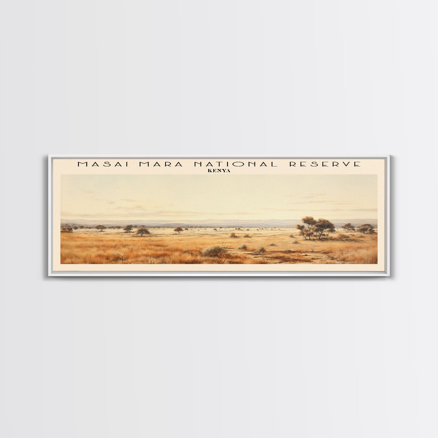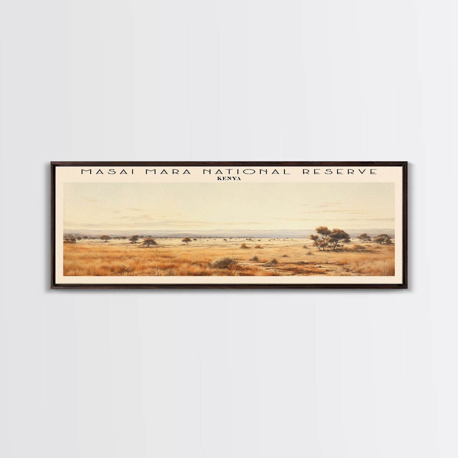 Masai Mara National Reserve Travel Print Wall Art, Travel Poster Print, Retro Style COUNTRY Home Decor, Wall Hanging, Travel Gift Idea, Unique Metal Art - 10x30 Inches / No Frame - Stretched Canvas Only is backordered and will ship as soon as it is back in stock.