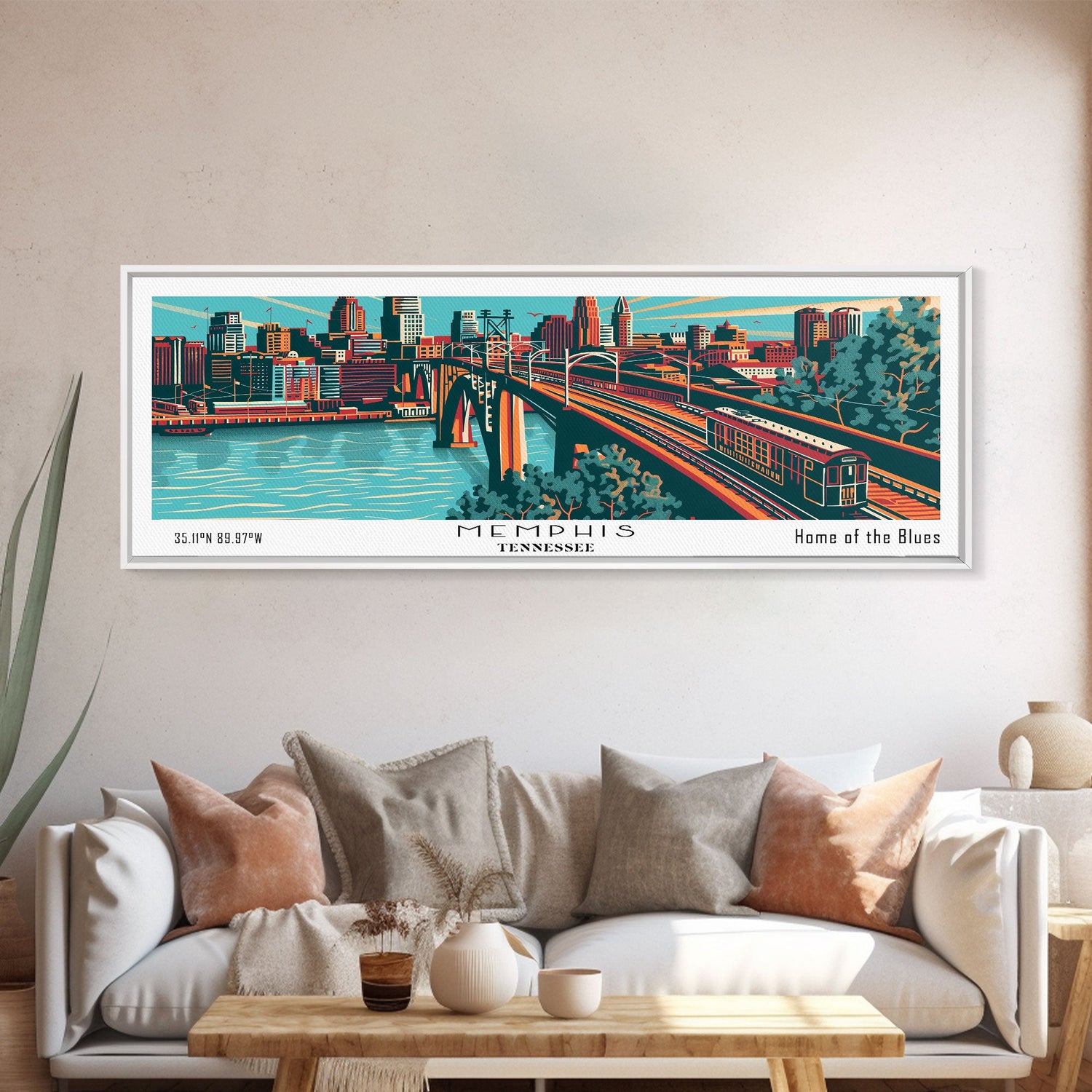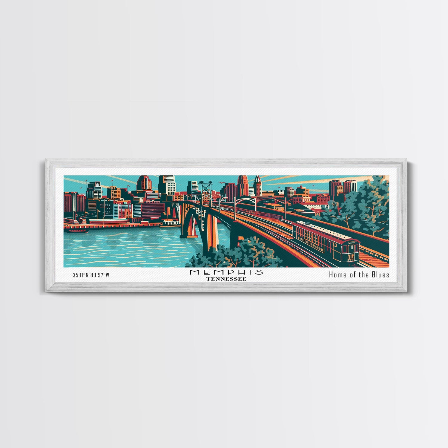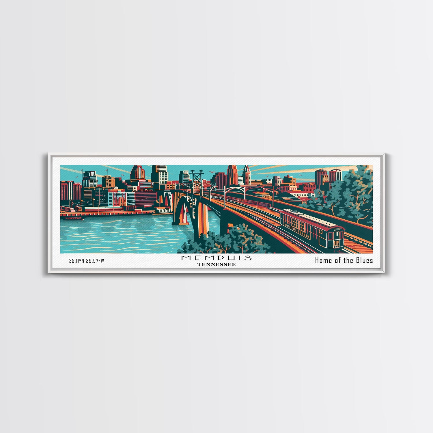 Memphis Tennessee Panoramic Painting Framed Canvas Print, Travel Poster, Mid Century Modern Art, Pop Art Style, Wall Decor, Retro Style Art - 10x30 Inches / No Frame - Stretched Canvas Only is backordered and will ship as soon as it is back in stock.