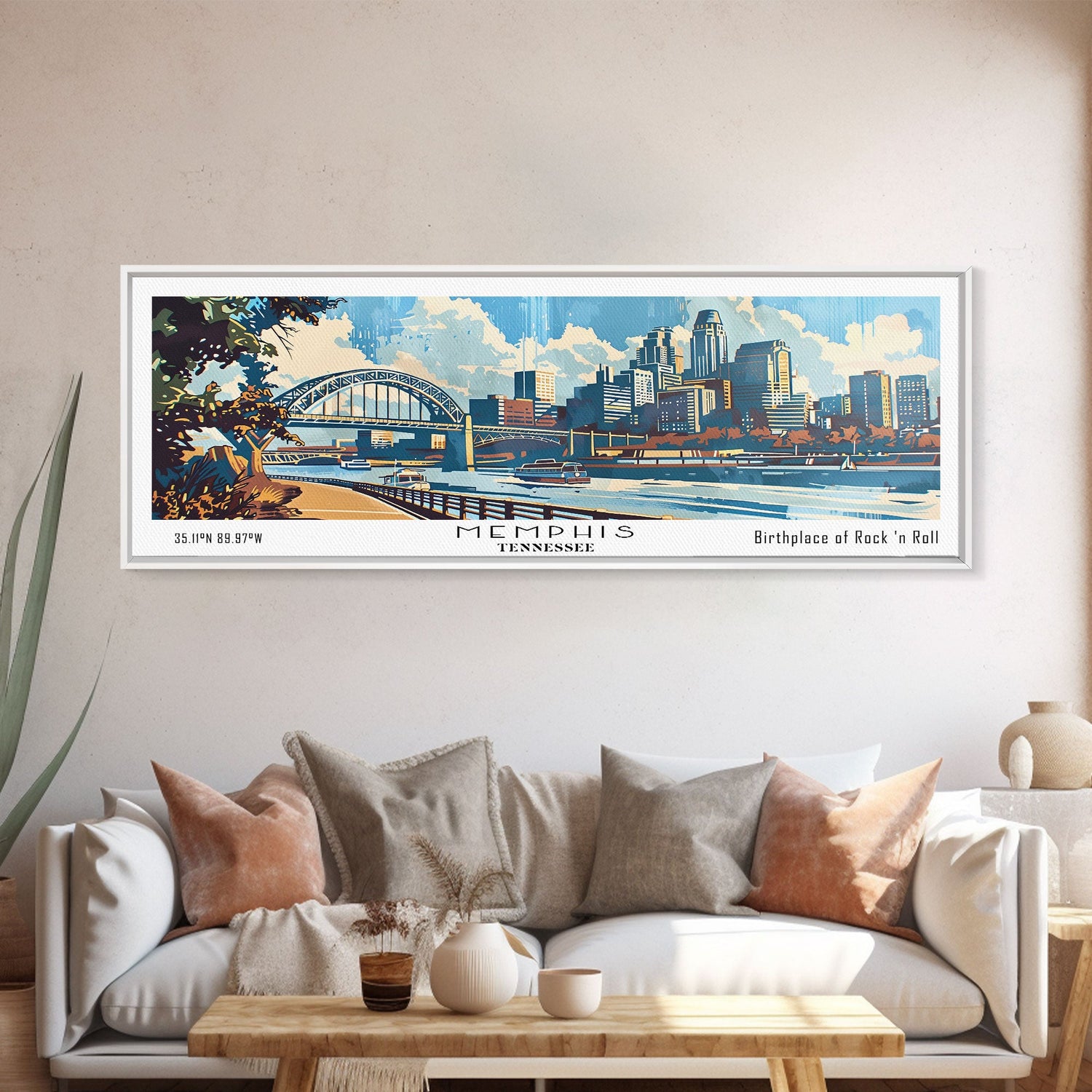 Memphis Tennessee Panoramic Wall Art, Mid Century Modern Framed Canvas Print, Retro Pop Art Travel Poster, Home Decor, Office Art, Gift Idea, Living Room Wall Hanging