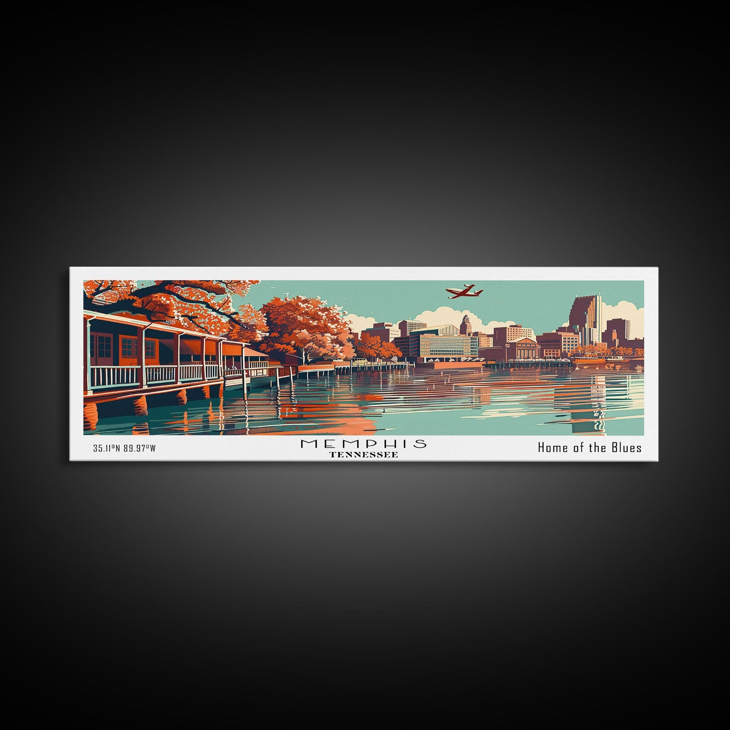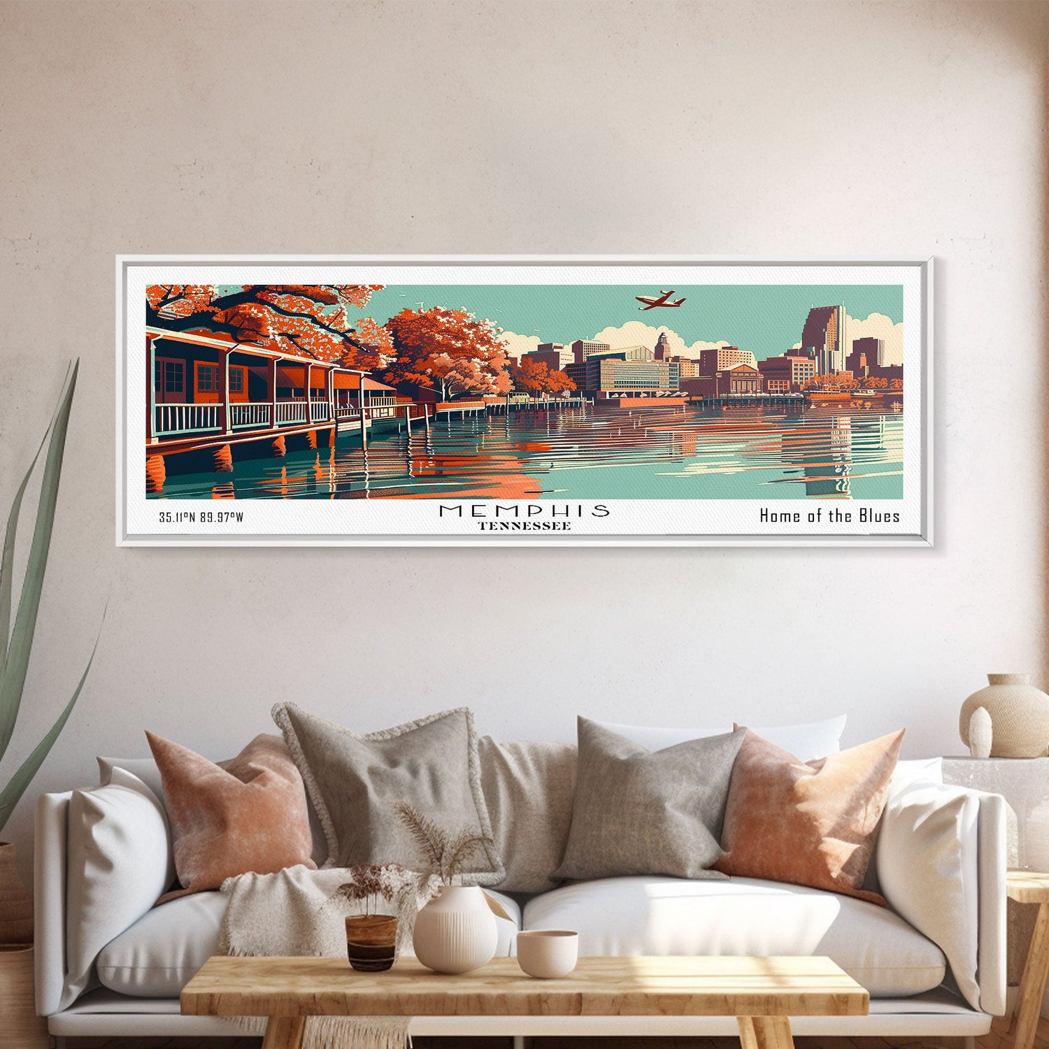Memphis Tennessee Panoramic Wall Art, Mid Century Modern Framed Canvas Print, Retro Pop Art Travel Poster, Office Decor, Cityscape Art