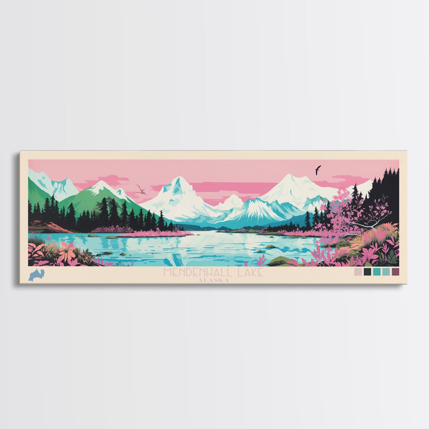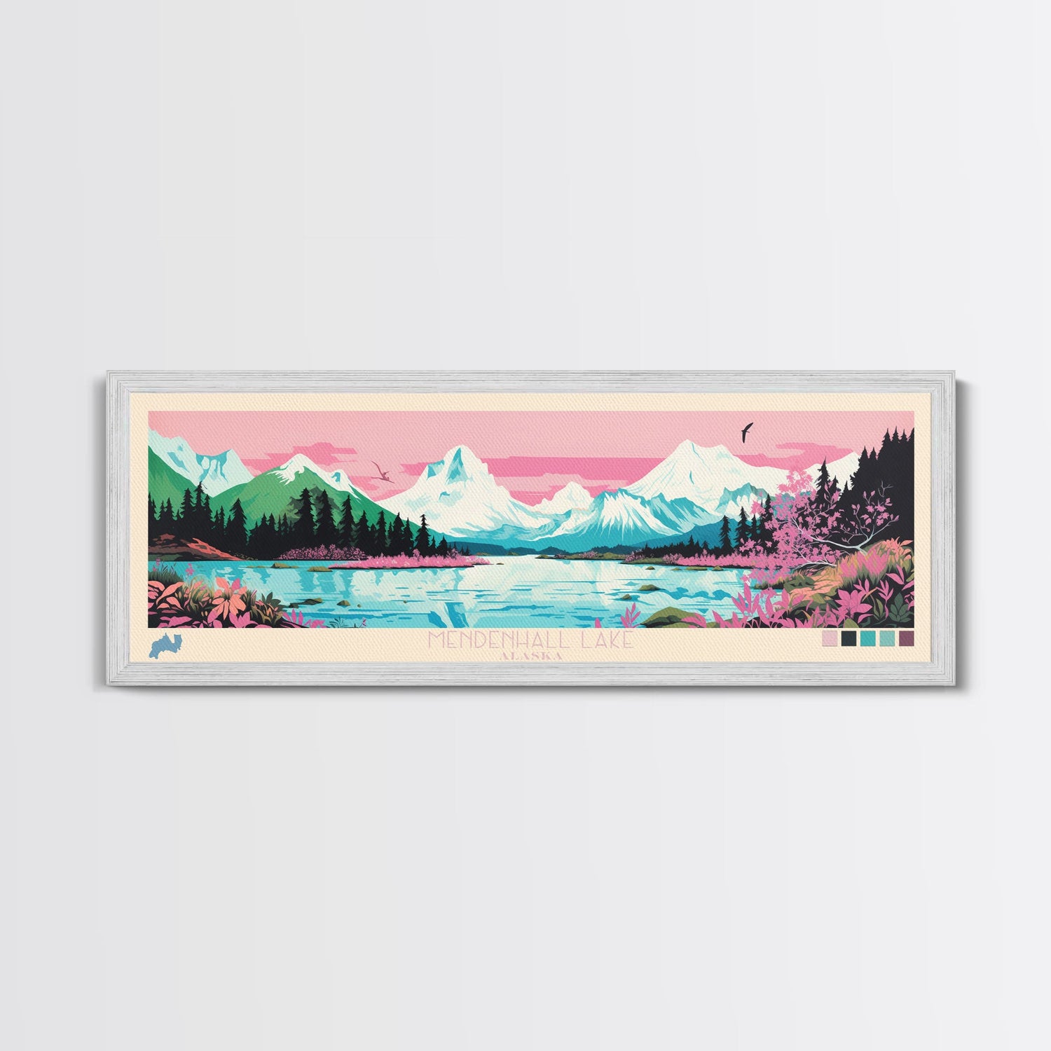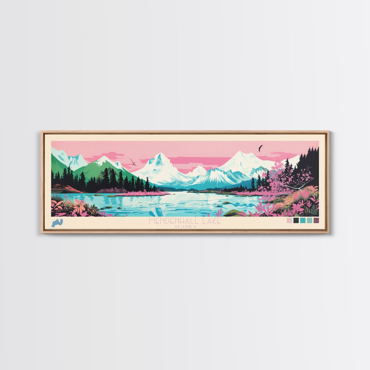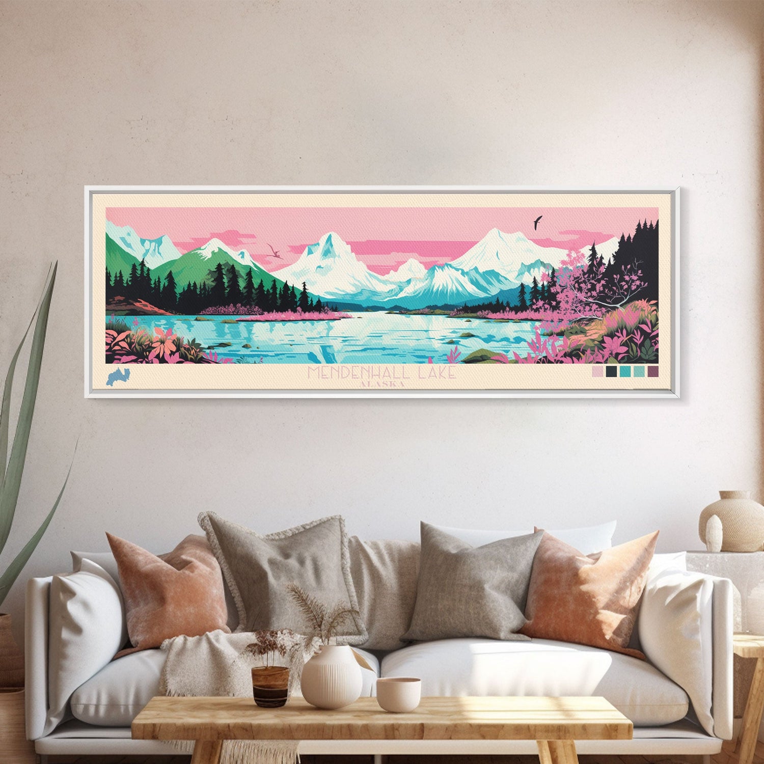 Mendenhall Lake, Alaska Panoramic Wall Art Framed Canvas Print, Midcentury Modern, Pop Art, Home Decor, Travel Poster, Living Room Art