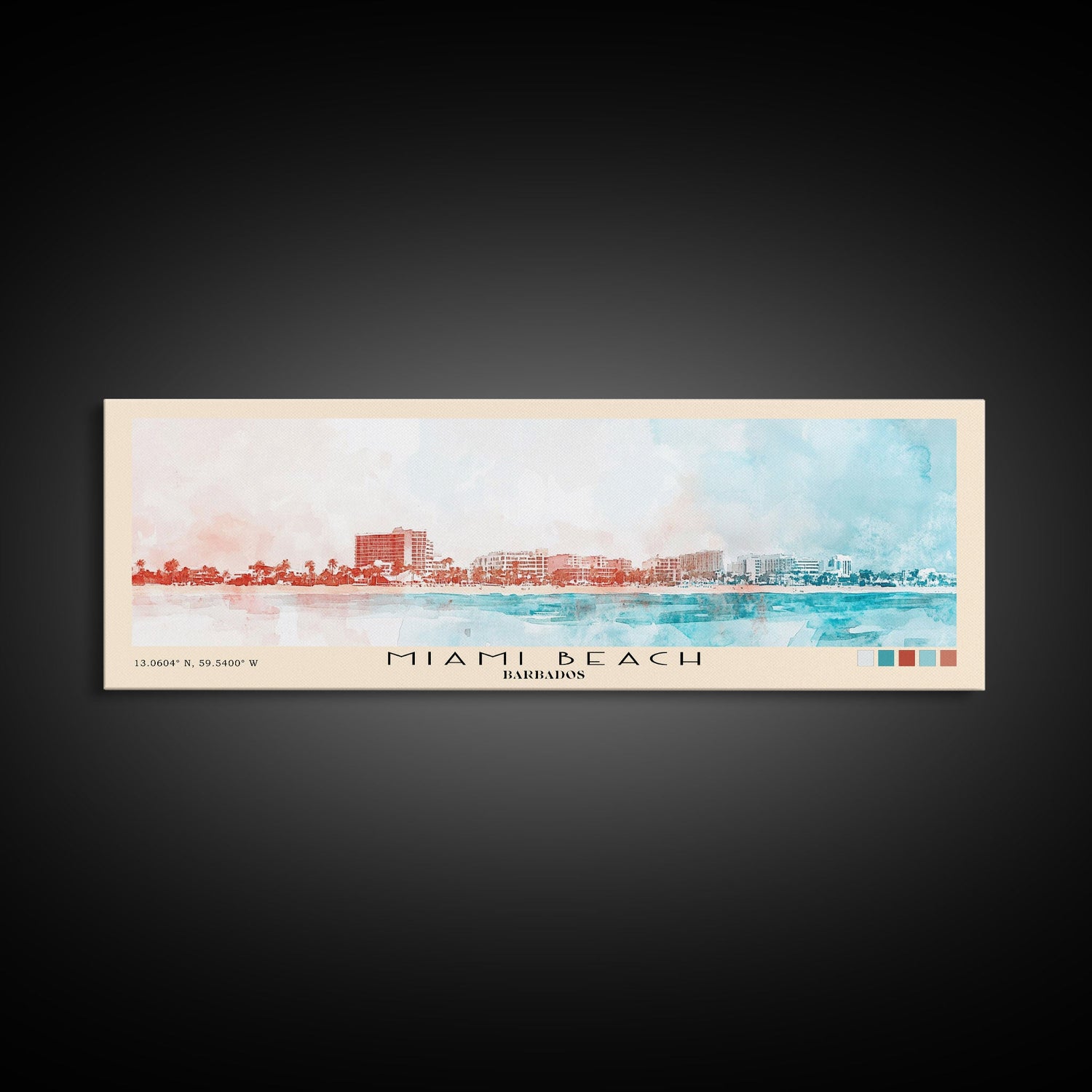 Miami Beach, Barbados Watercolor Beach Print, Vacation Gift, Barbados Wall Art, Beach Painting, Beach Decor, Beach Painting - 10x30 Inches / No Frame - Stretched Canvas Only is backordered and will ship as soon as it is back in stock.