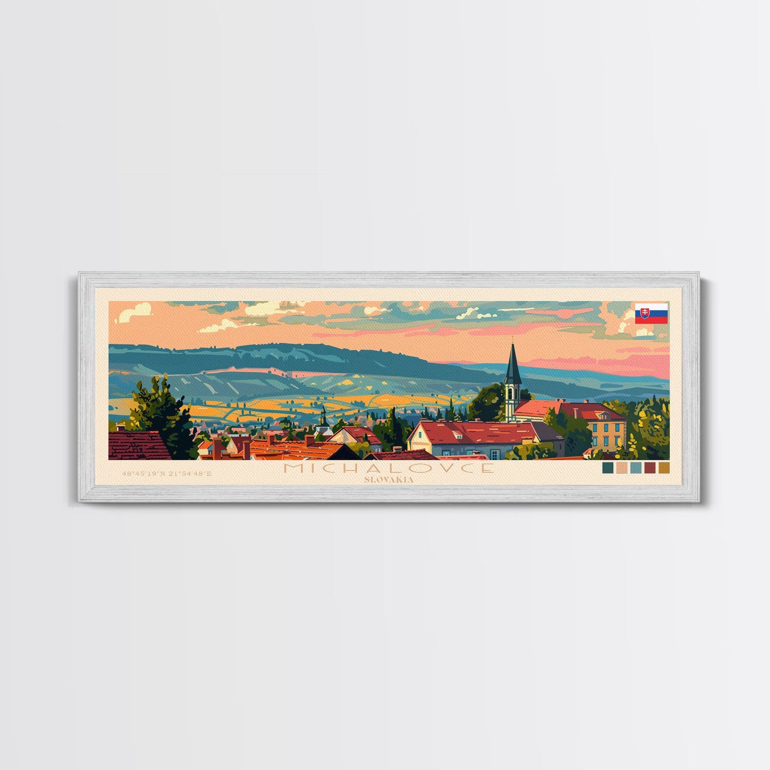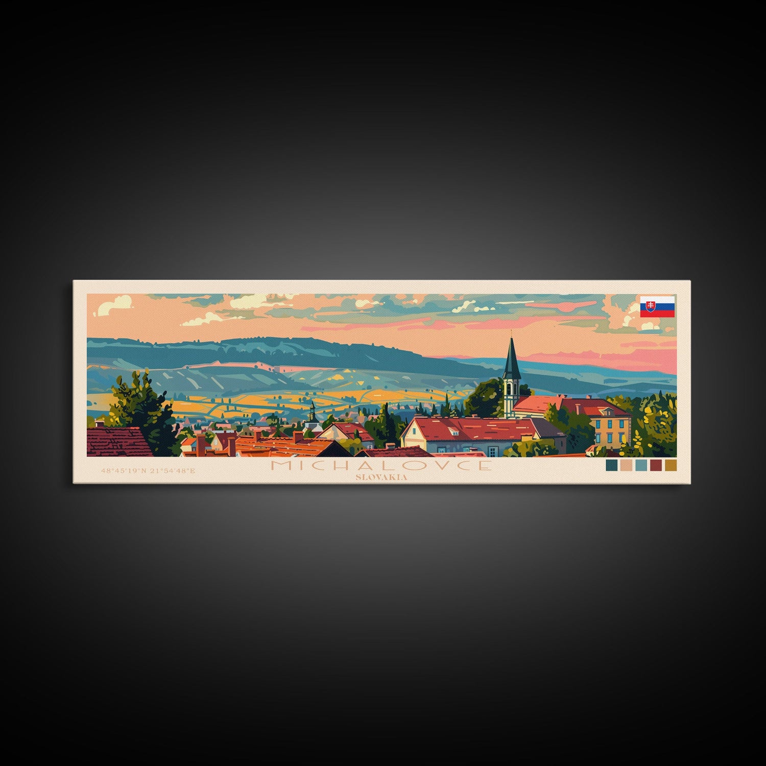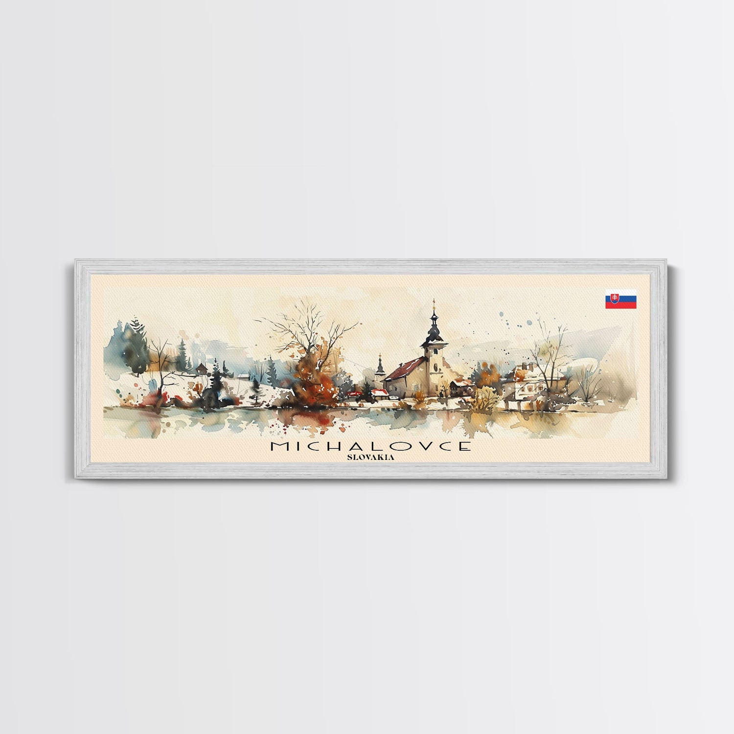 Michalovce Slovakia Travel Art, City Art, Framed Canvas Print or Metal Wall Art, Europe Travel Poster, Panoramic Wall Art, Extra Wide Wall Art
