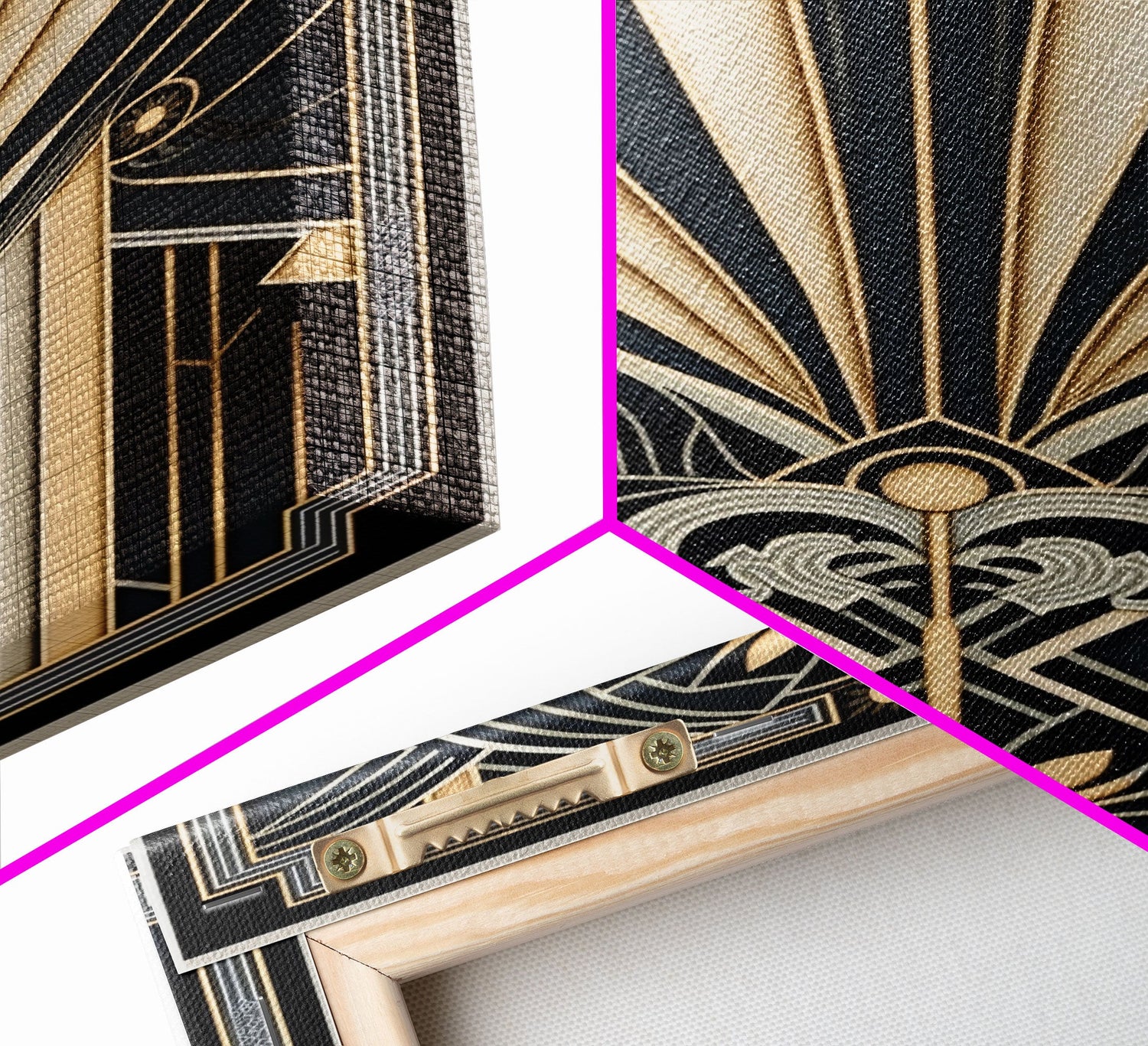 Midcentury Modern Wall art, Framed Canvas Print, Art Deco, Gold & black art, Living room art, Abstract art, MCM Art, Office wall art