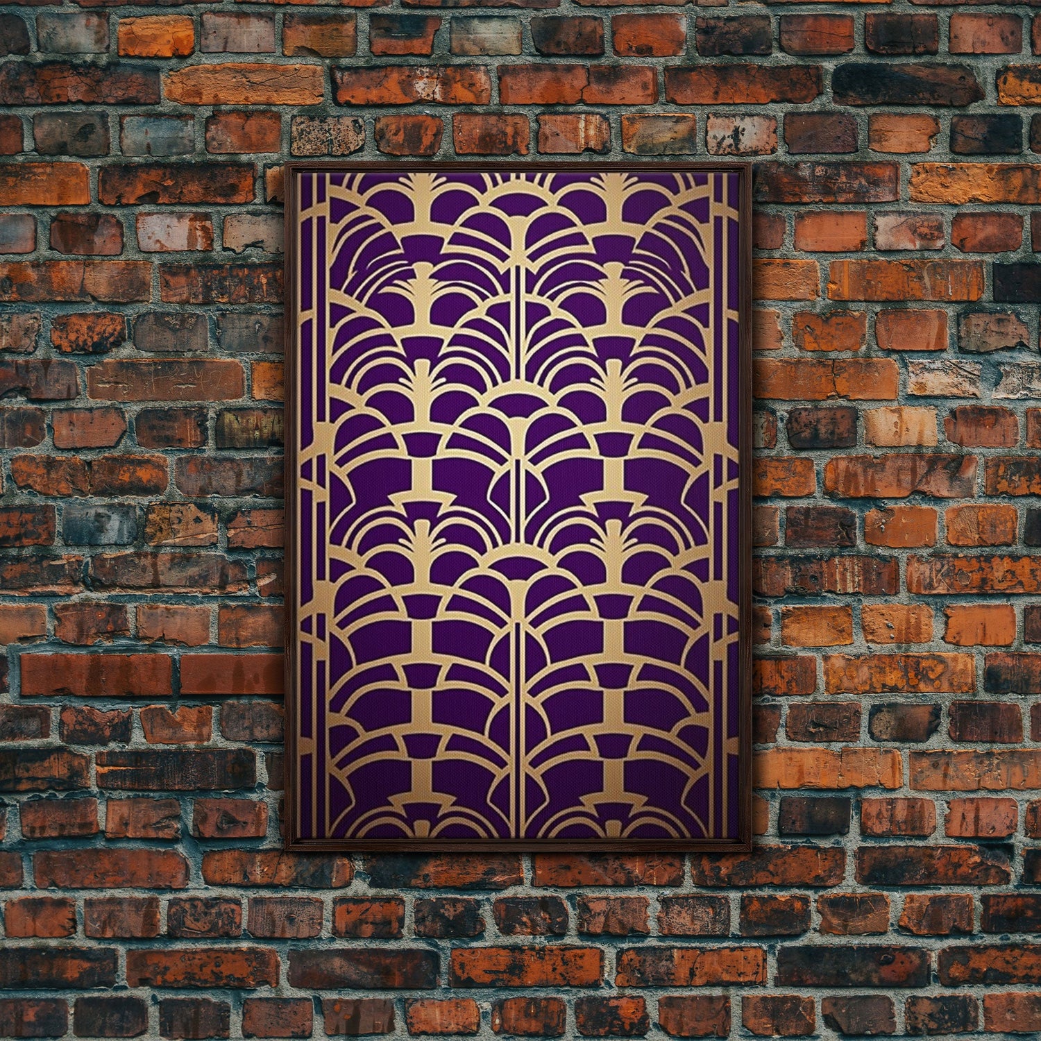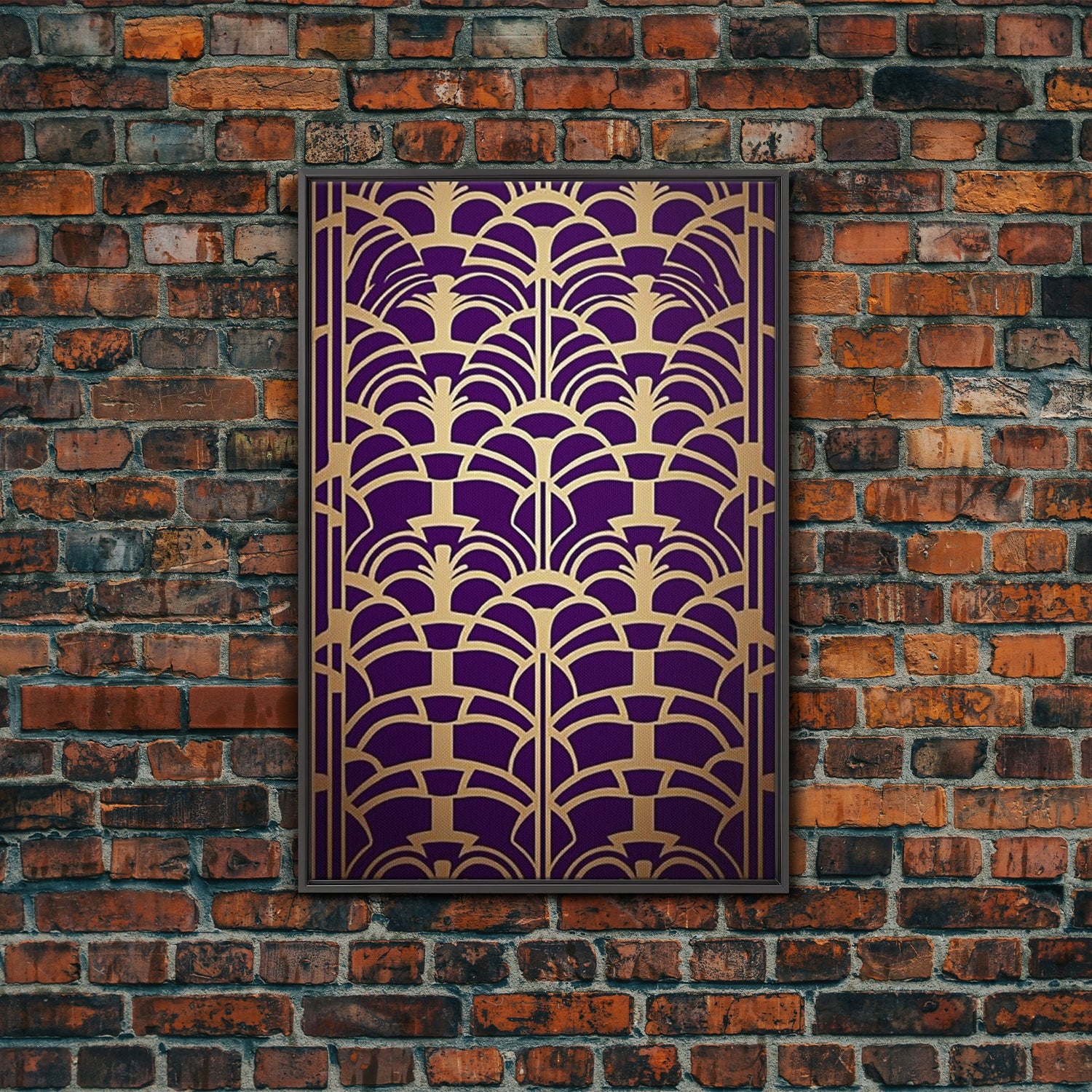 Midcentury Modern Wall art - Framed Canvas Print - Art Deco- Office decor - Purple & gold art - Ornament art - Abstract art - Geometric art